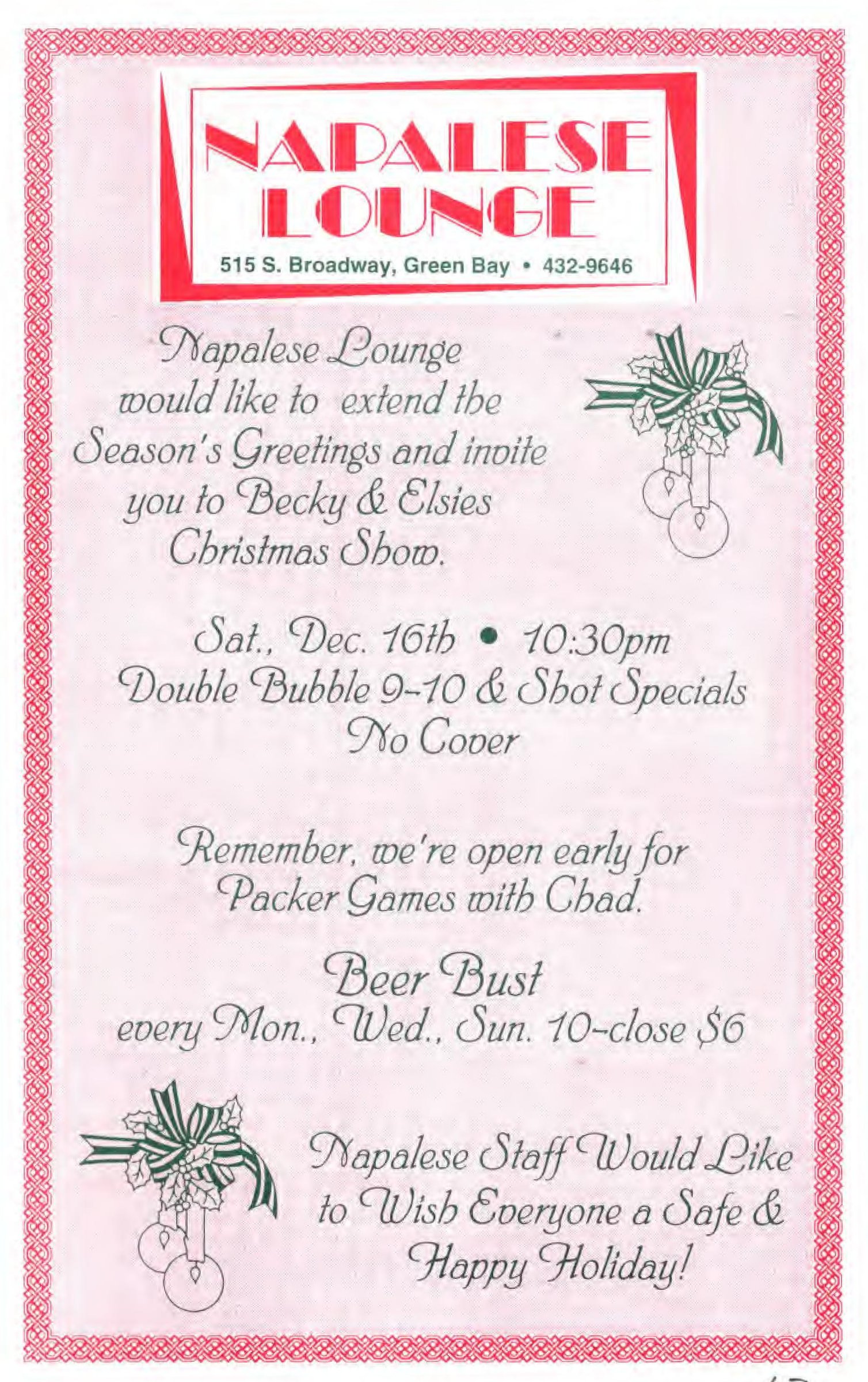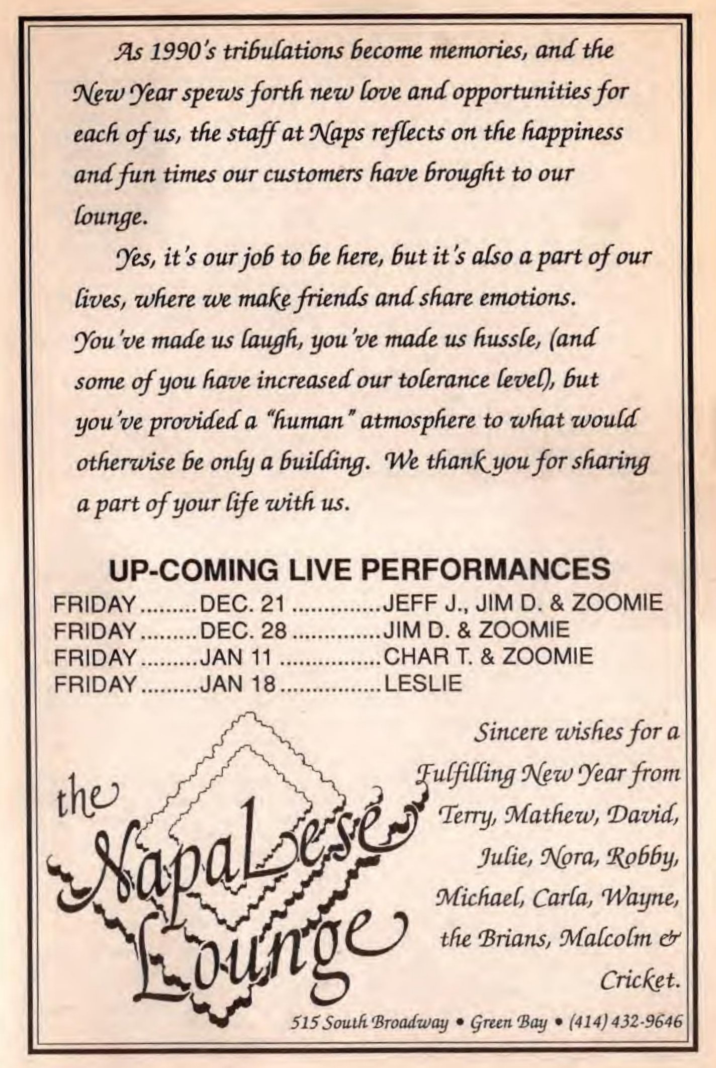 Advertisement: Thanks for providing the bar a human atmosphere, and Sincere wishes for the new year