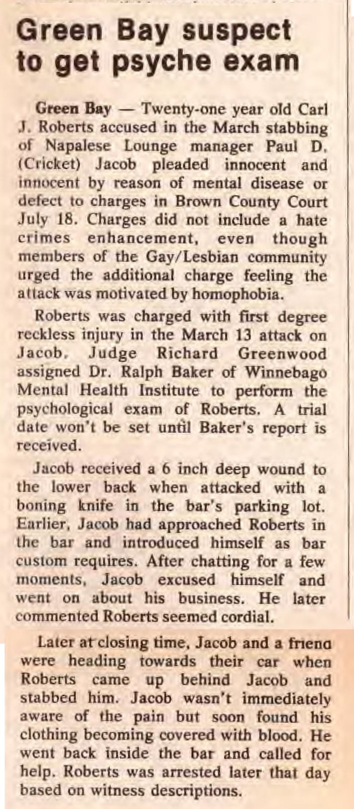 News article: person who stabbed manager Paul Jacob ('Cricket') in Napalese parking lot to get psych exam