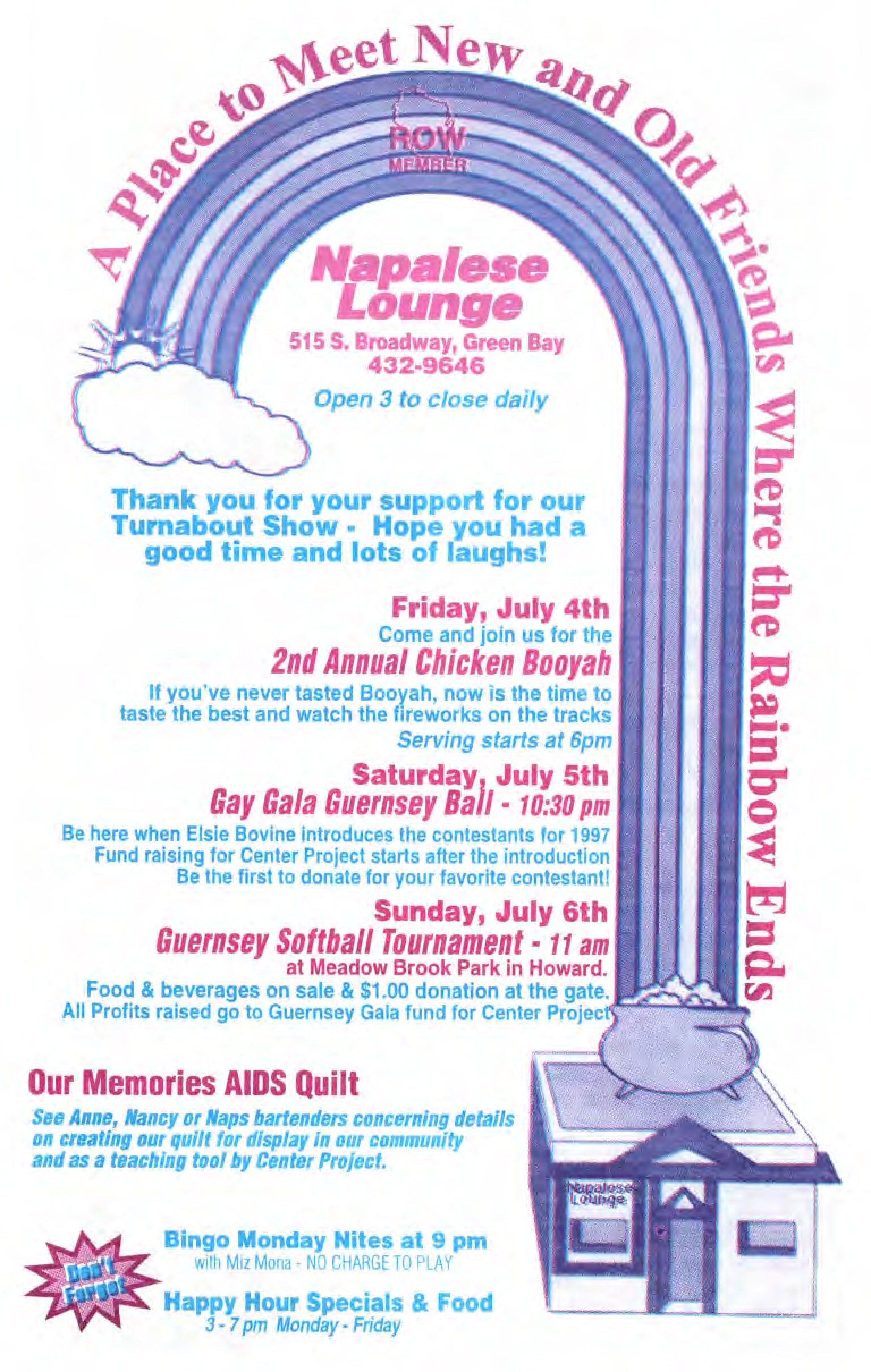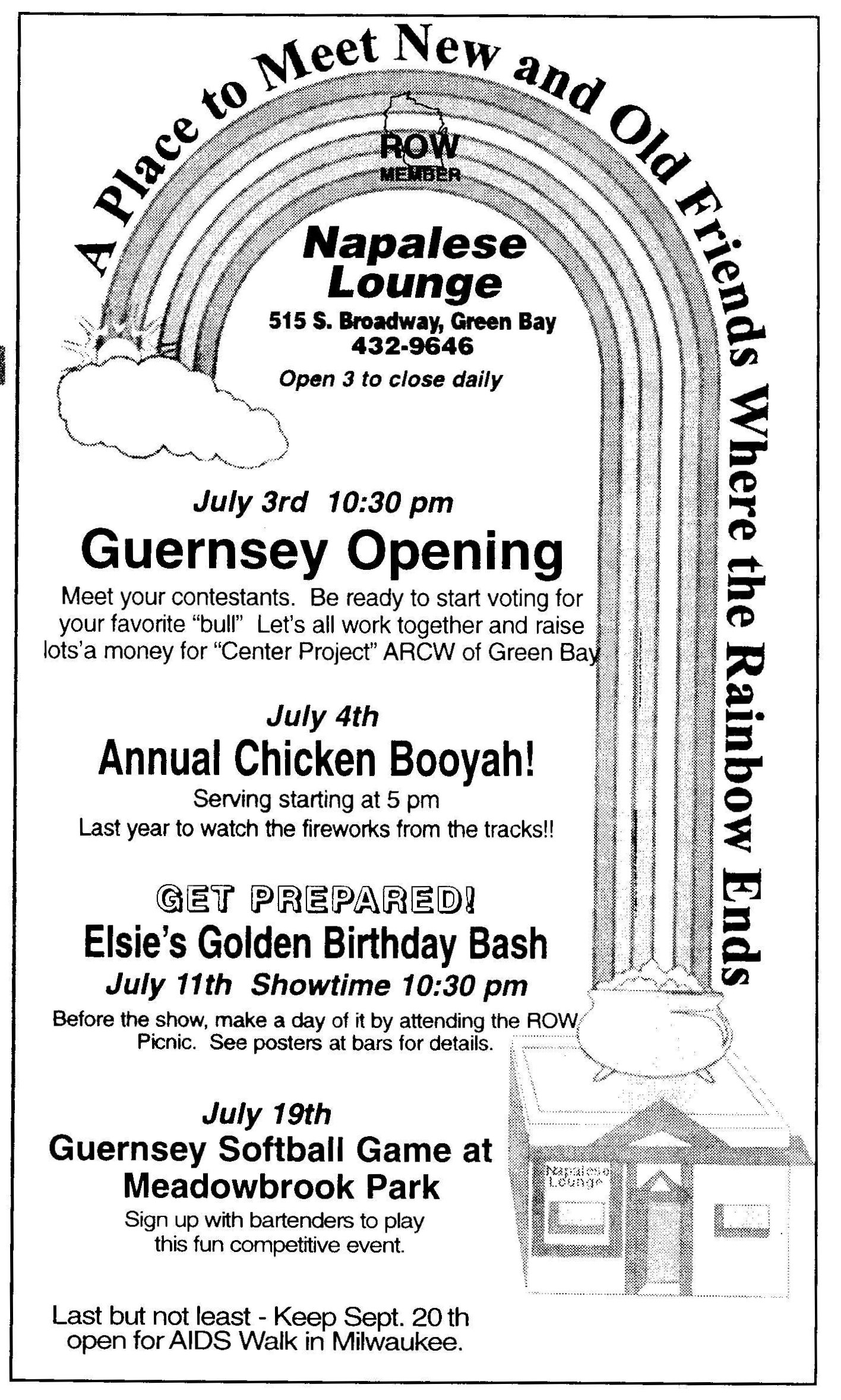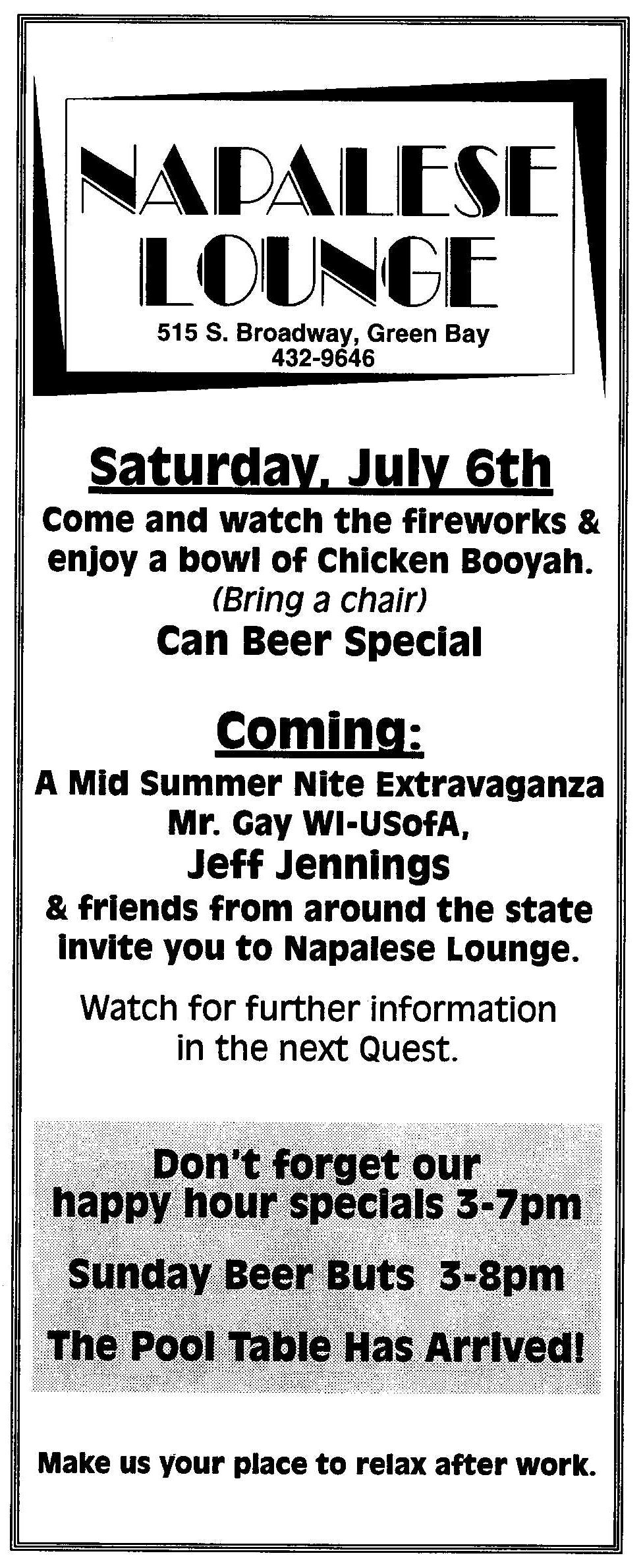 Ad: July 4 Fireworks with Chicken Booyah; Extravaganza with Mr. Gay WI-USofA Jeff Jennings