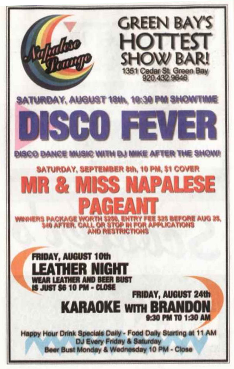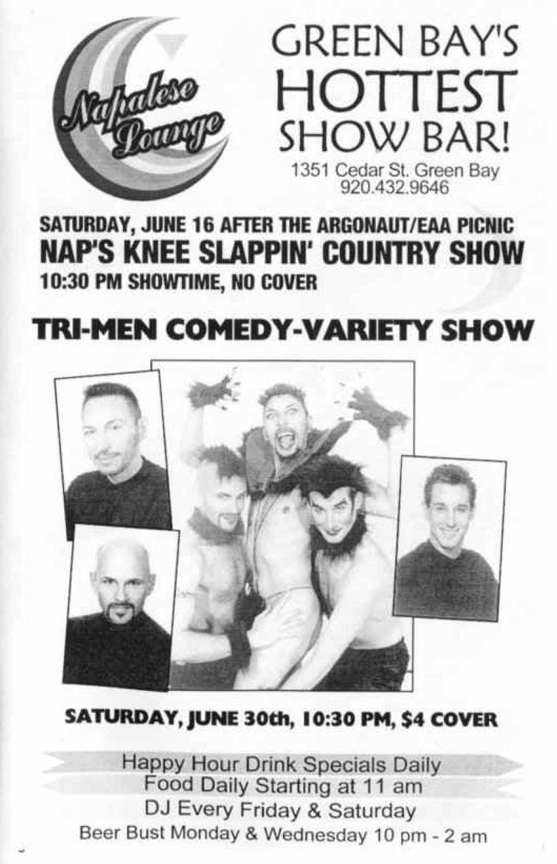 Ad: 'Green Bay's Hottest Show Bar'; Country show; Tri-Men Comedy-Variety Show