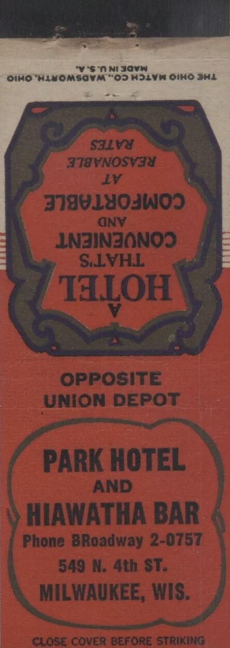 Very little is known about the Park Hotel and Hiawatha Bar, but it was mentioned in many interviews with contributor George 'Bunny' Opper. The Park Hotel was widely known as a cruising hotel, and being across the street from Union Depot train station (in the days before air travel was common), its circular bar was popular for watching people on 4th Street. Bunny called it an "early form of Grindr." More information about this business is welcomed from anyone who can contribute it. |
