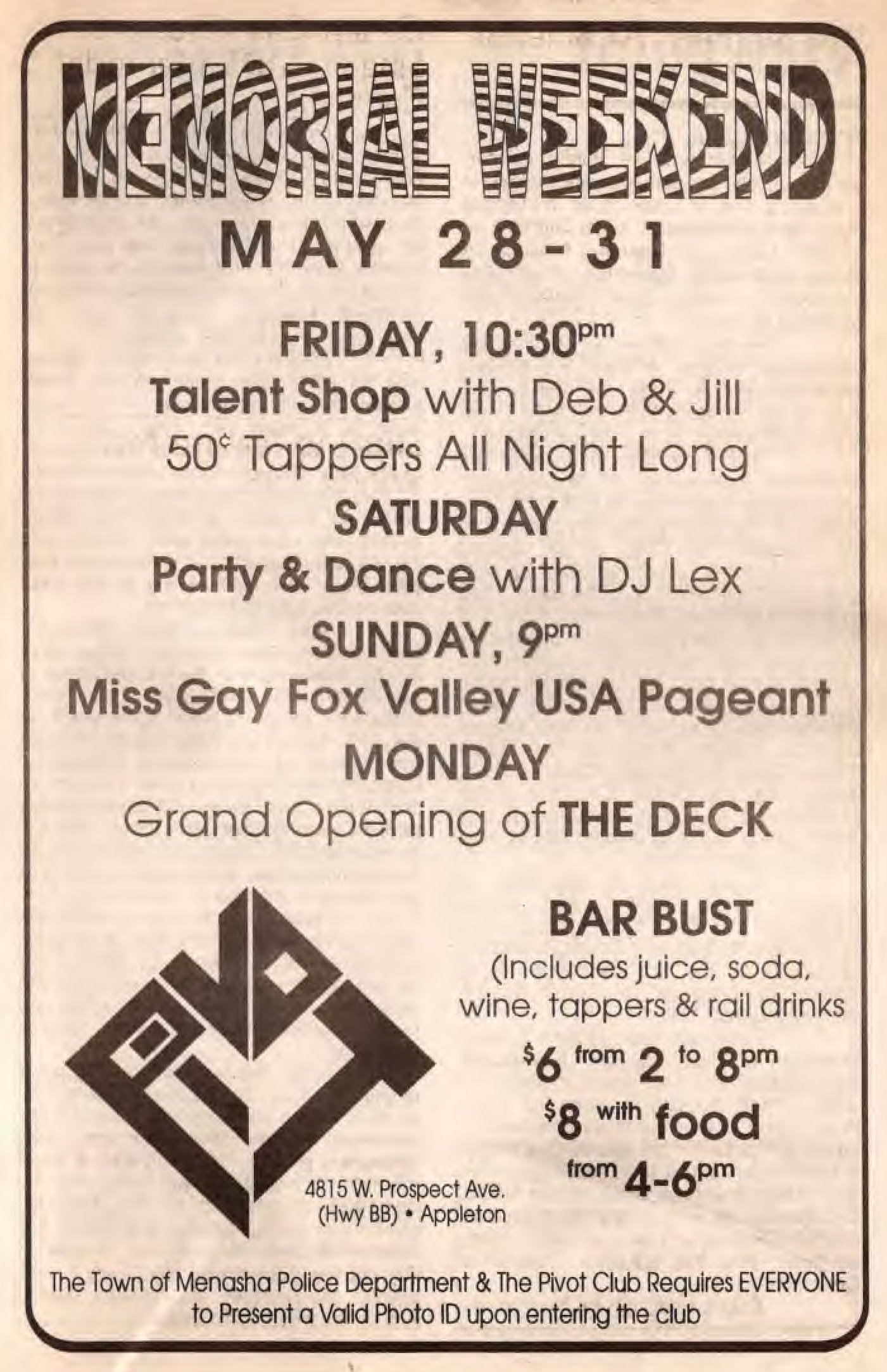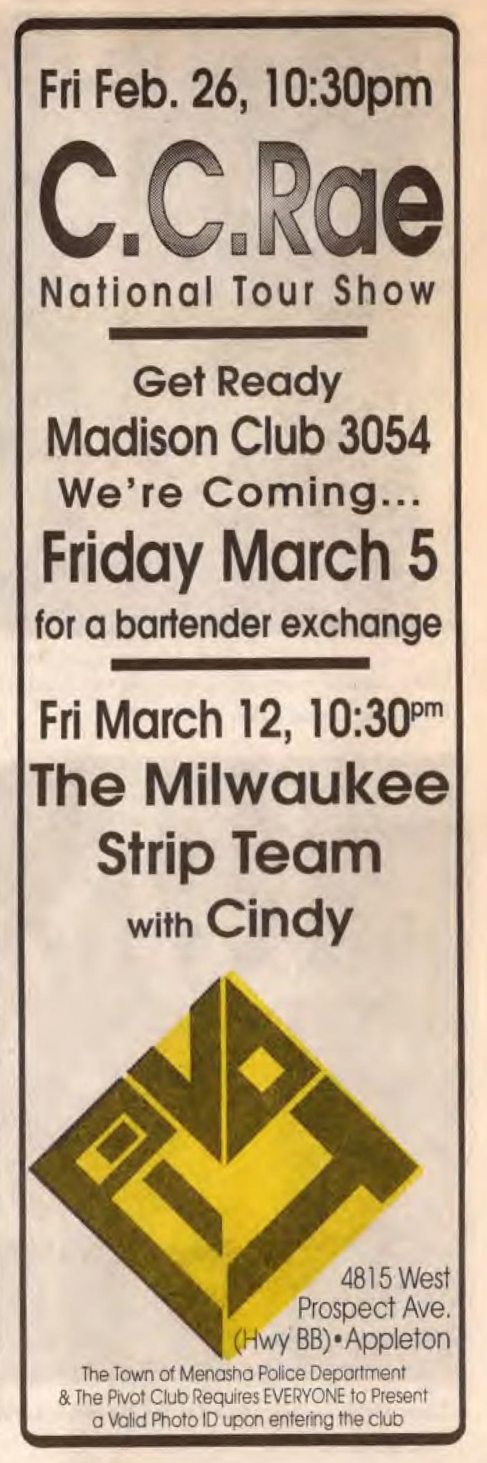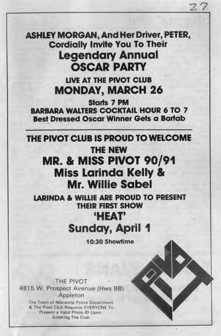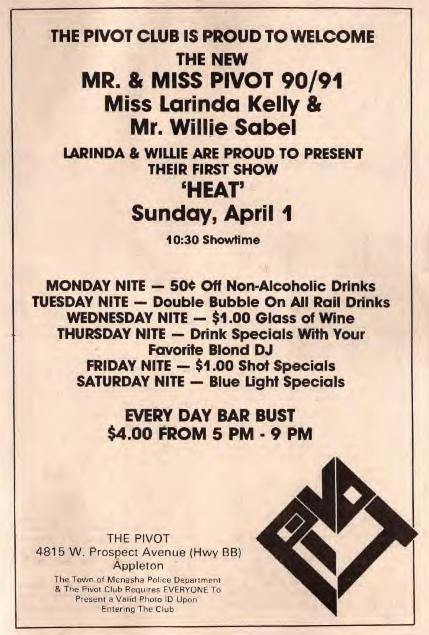 Ad announcing new Mr. and Miss Pivot 1990/91