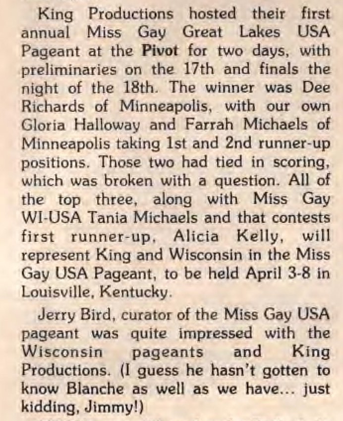 Advertisement, Pivot to host Eighth Annual Miss Gay Wisconsin USofA Pageant