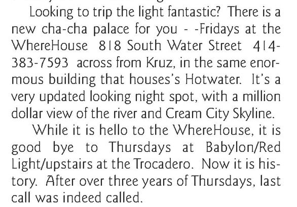 - Babylon -- Thursdays at Red Light/ Trocadero, 1758 N. Water St. (October 2006- August 2008)