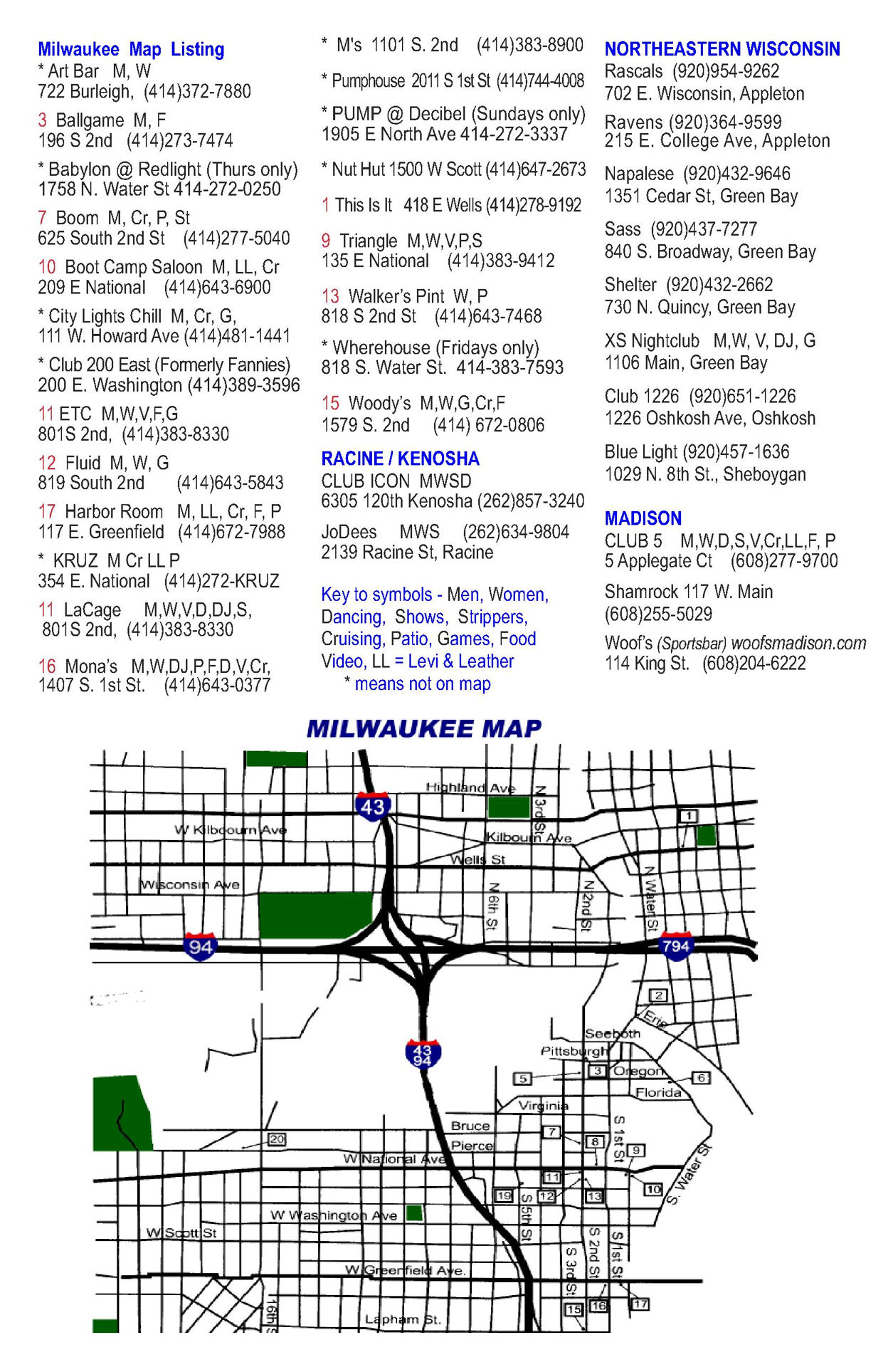 Locations and nights of business included: (Additional events were held one-time-only to capitalize on 2006 Pridefest weekend nights or other special dates.)