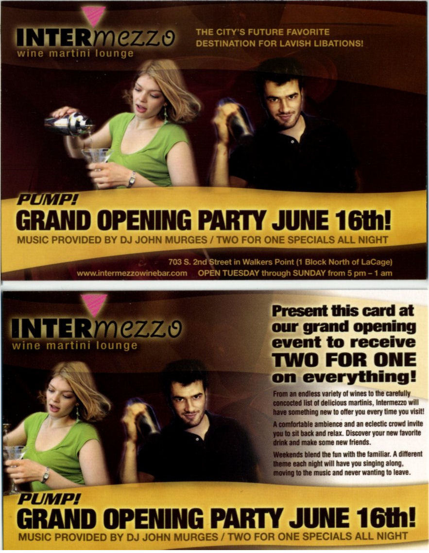 Ad, Grand Opening party for Intermezzo bar Wine & Martini lounge, 703 S. 2nd St.