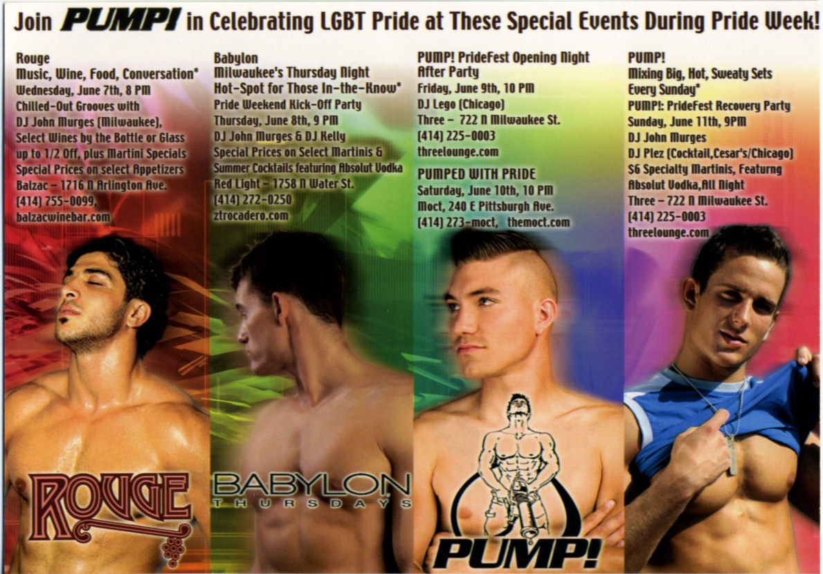 - 'Pumped with Pride' -- single event at Moct, 240 E. Pittsburgh (2007)