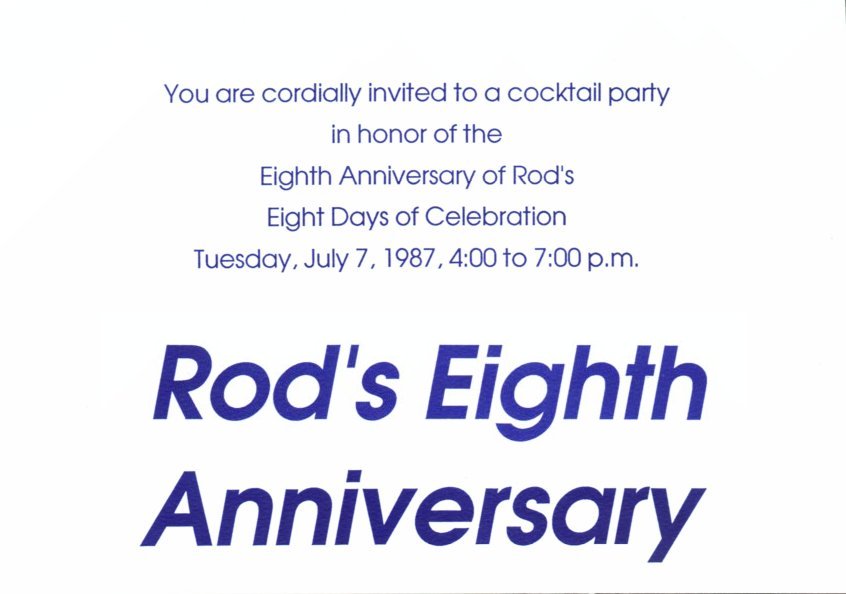 8th Anniversary Invitation, 1987