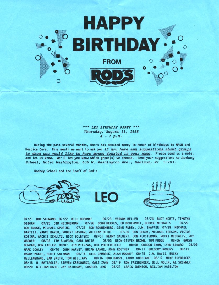 1988 Birthday greeting to Leos