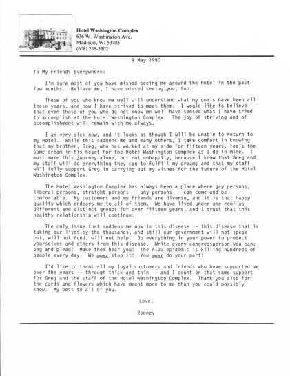 Last letter from Rod prior to his death, May 1990
