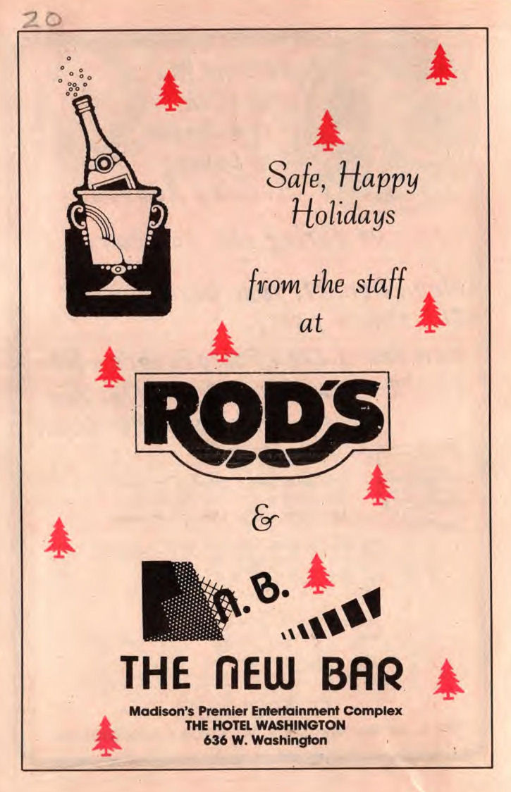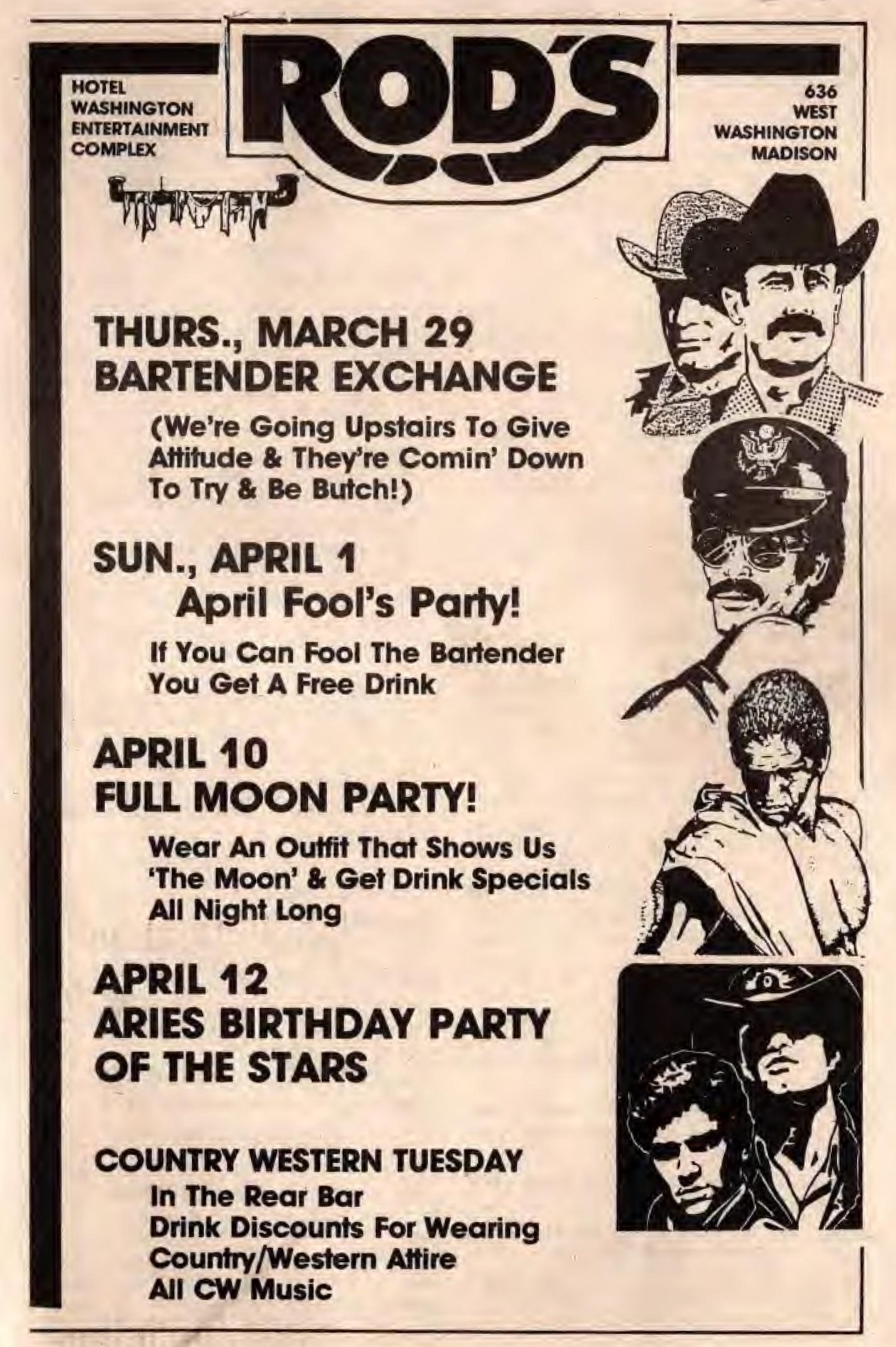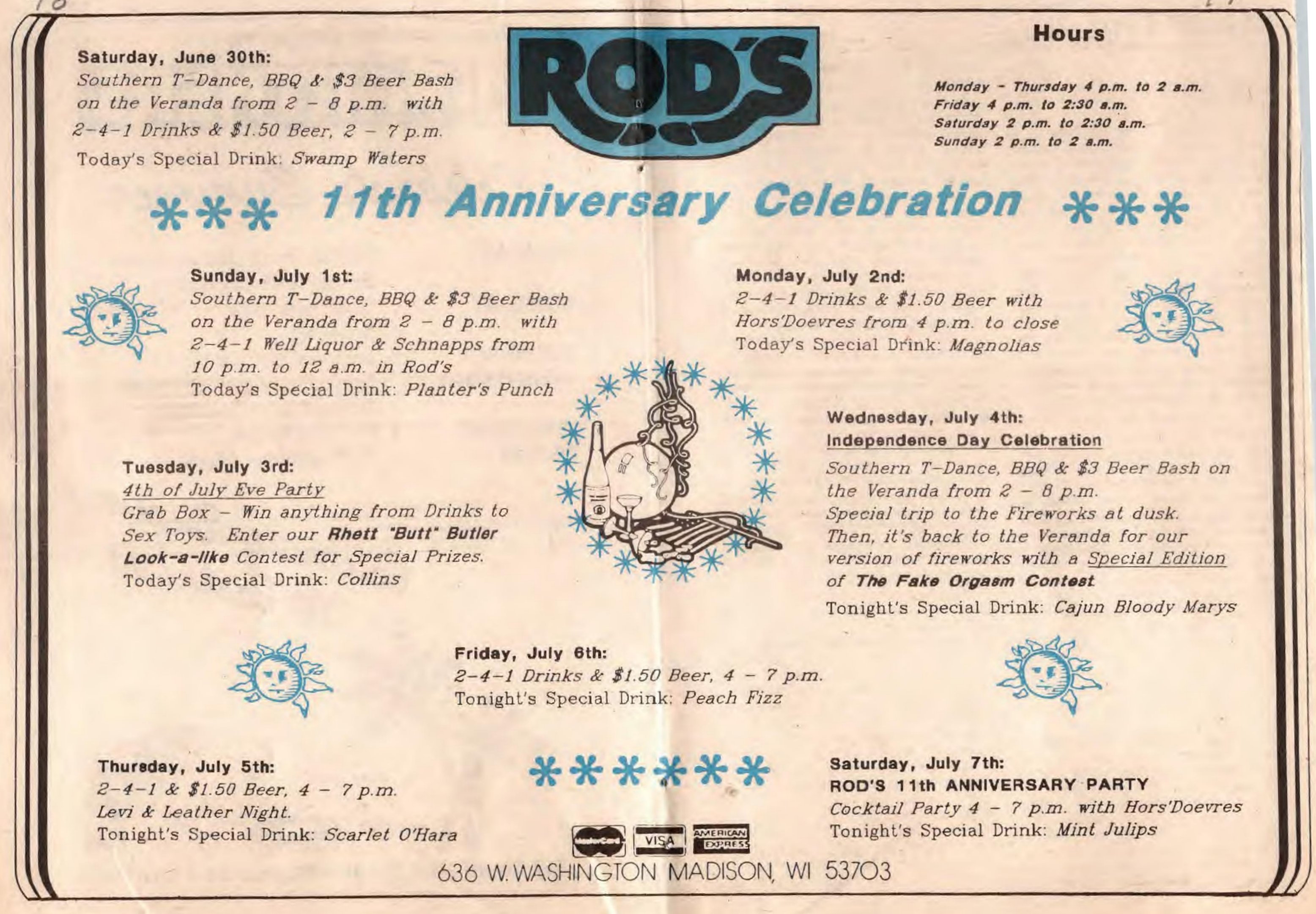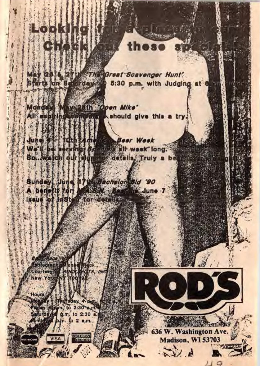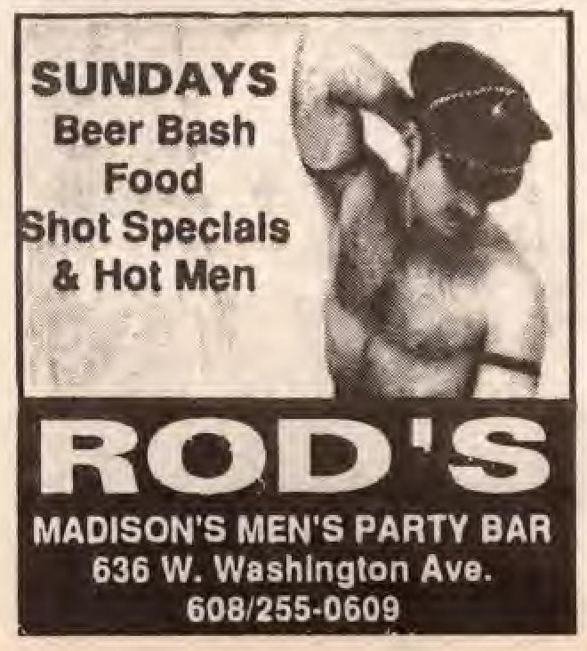 Ad: Sunday specials; "Madison's Men's Party Bar"