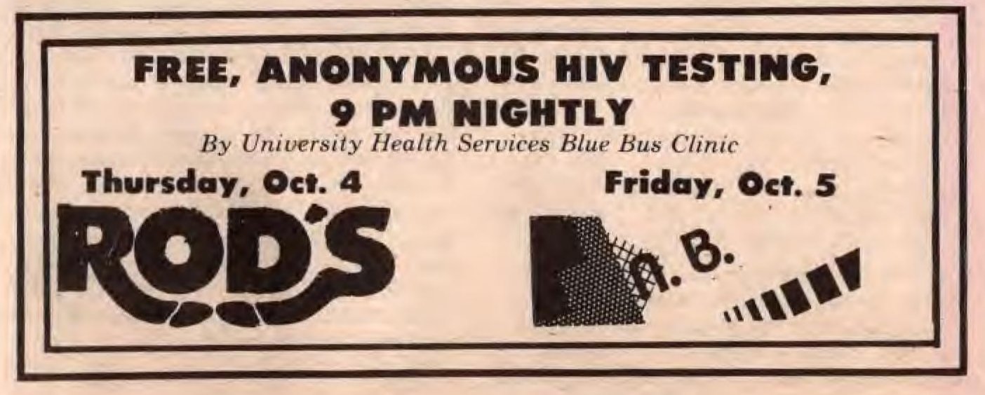 Ad, HIV testing at Rods and New Bar