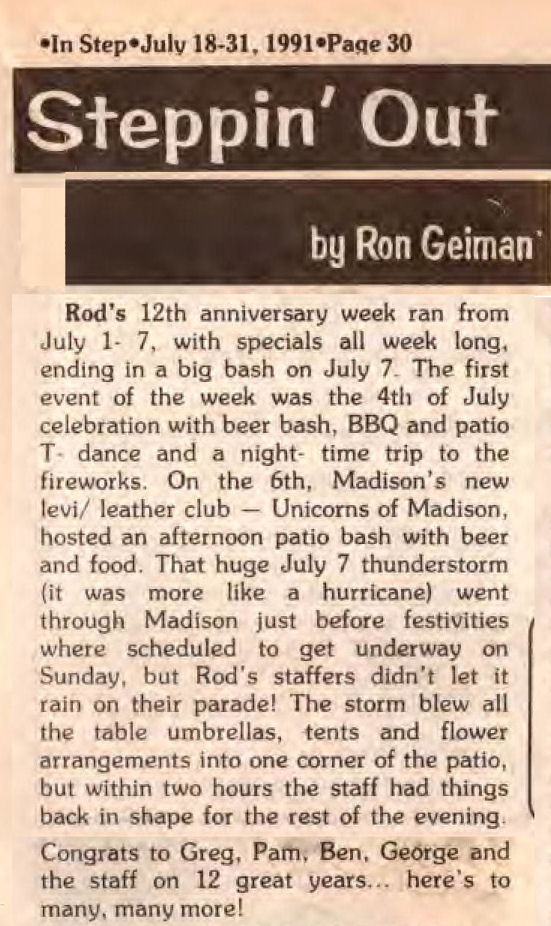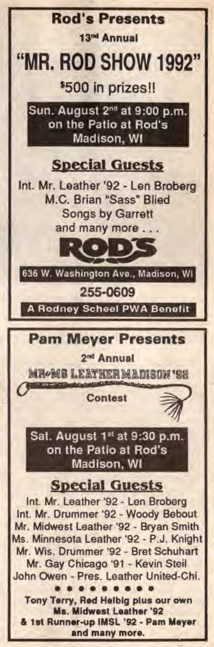 Ad: 13th annual Mr. Rod Show; and 2nd annual Mr & Ms Leather Madison contest August 1 + 2, 1992