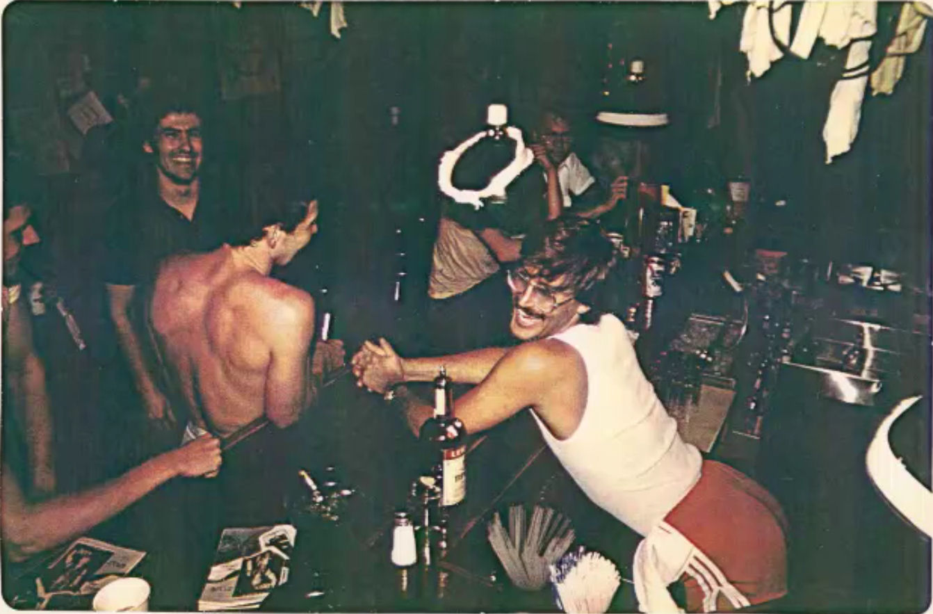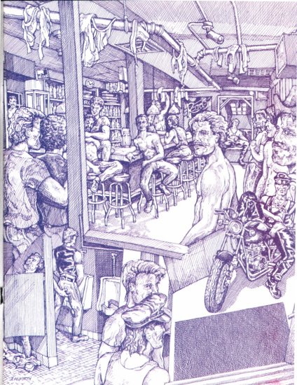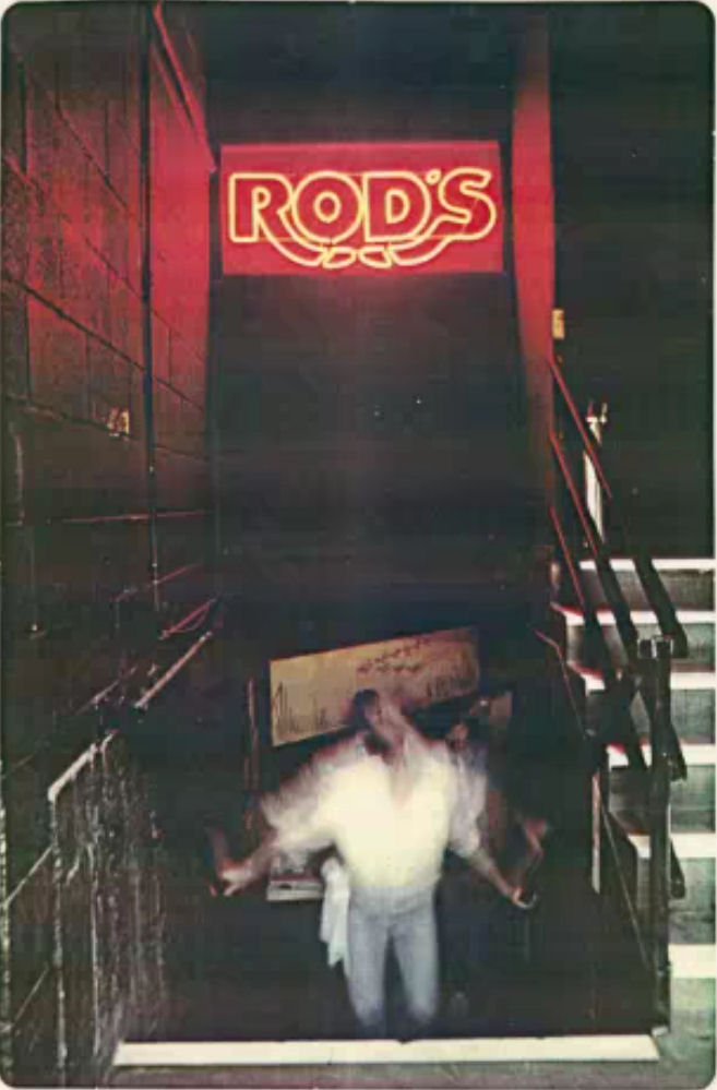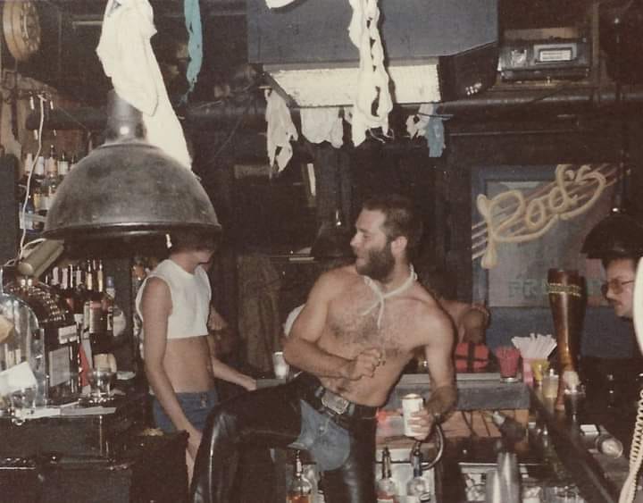 Rod's bar became a gay icon and legend among gay men in the 1980's and 1990's Madison. Opened by entrepreneur Rodney Scheel and located in the lower level (basement) of the Hotel Washington building just west of downtown Madison (which Rodney owned with his brother Greg), the bar had a decidedly leather/levi type ambiance. Early on, "Rod's" took on a "tradition" of the bartenders holding surprise "spot checks" for men wearing underwear- which, if found, were promptly removed (cut off) and hung over the pipes on the ceiling of the bar. In no time the pipes running in the main bar room were draped with countless cut-off underwear. The bar became an extremely popular destination for men throughout Wisconsin and even from northern Illinois. Over time, the bar opened additional rooms in the back, one of which showed adult male (i.e. gay porn) videos. (On the seedier side, Rod's "men's room" had its own little tradition: on occasion one might find, along the walls holding the urinals, someone kneeling: aficionados of "water sports" were to be found that night!) An outdoor patio was a very popular addition. Opened outside/ upstairs, the patio was popular spring, summer and fall evenings and nights, but especially weekends; a popular Sunday afternoon beer bust and cookout became another tradition. The patio also became "the place to be" the Saturday evening and night of the annual Pride celebration in Madison. After a day of fun at the MAGIC picnic in Brittany Park, Rod's would be hopping later, with people relaxing with drinks around the patio. Toward evening revelers would begin dancing, and at nightfall a spectacular laser light show would excite dancers and onlookers alike. Through it all, Rodney and his staff had a knack for coming up with new and unique events and bar specials, which other bars could never seem to match. The Hotel Washington had became a complex of activity, in addition to Rod's basement bar. Prior to Rod's being opened, upstairs in front, a cafe/restaurant, the Cafe Palms, was often busy, especially popular for Saturday and Sunday brunch. On the same level, "Club de Wash" was popular with the straight community, and frequently had live bands performing. After the success of Rod's, the upstairs of the hotel building became the setting for The New Bar, which quickly became "the" dance bar in Madison. Several rooms in the upper level of the hotel were also available for renting by out-of-towners during special events and weekends (such as the annual pride weekend). But Rod's continued to be the ultimate mecca for gay men throughout the area. Unfortunately, the owner and focus of festivities at Rod's, Rodney Scheel, became ill. The AIDS epidemic had taken hold, and Rodney was an early victim. Rodney died in 1990 after a long and drawn out battle, having not set foot in his bar or successful hotel complex for almost a year. Rod's brother Greg took over and carried on ably. The final chapter was to take place a few years later. On the cold morning of Sunday, February 18, 1996, a fire was somehow sparked in the Hotel Washington, which still housed the wildly popular Rod's, New Bar, Club de Wash, and Cafe Palms. In the bitter cold, the fire department called several alarms, but to no avail-- by morning the remains of the complex were a few badly charred and leaning walls, somehow with a pride flag still flying. Although there was talk of rebuilding, that was not to be, and Rod's named legacy came to an end.