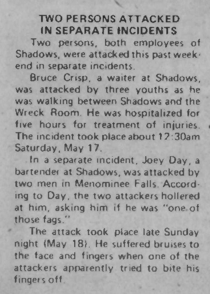 Article: Two employees attacked in separate incidents (Bruce Crisp and Joey Day)
