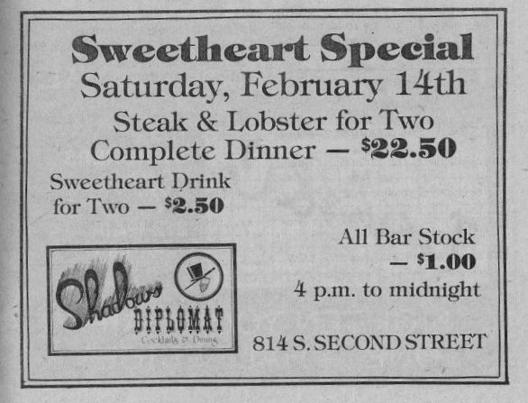 Advertisement: Sweetheart Special dinner