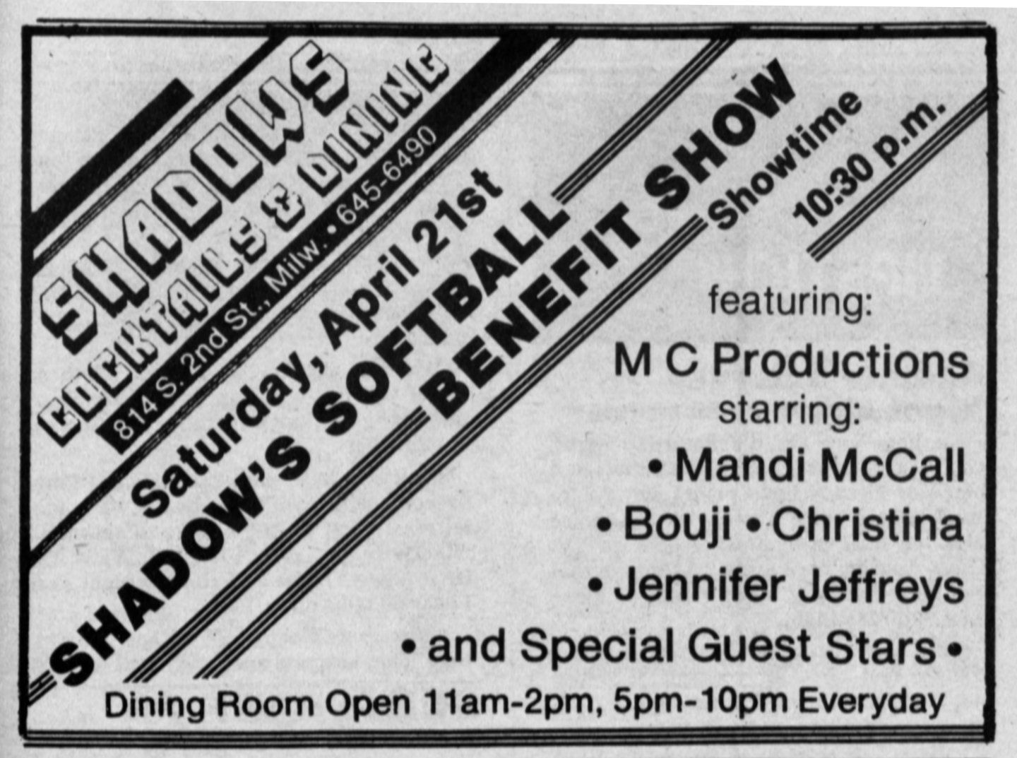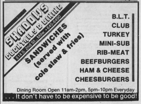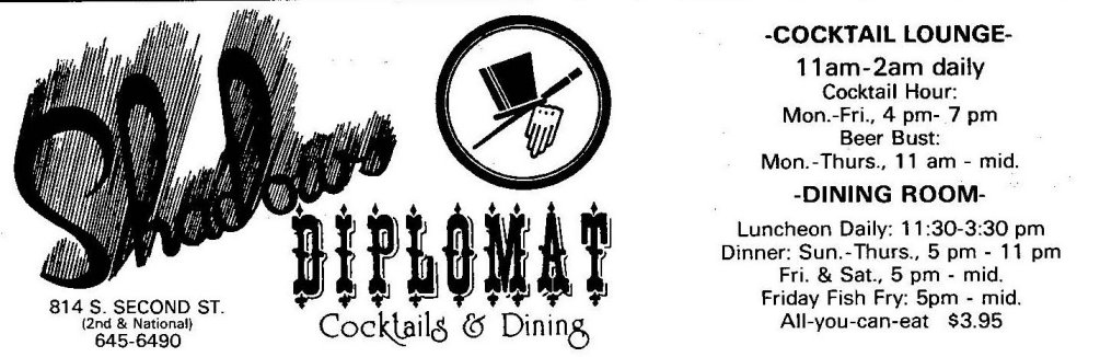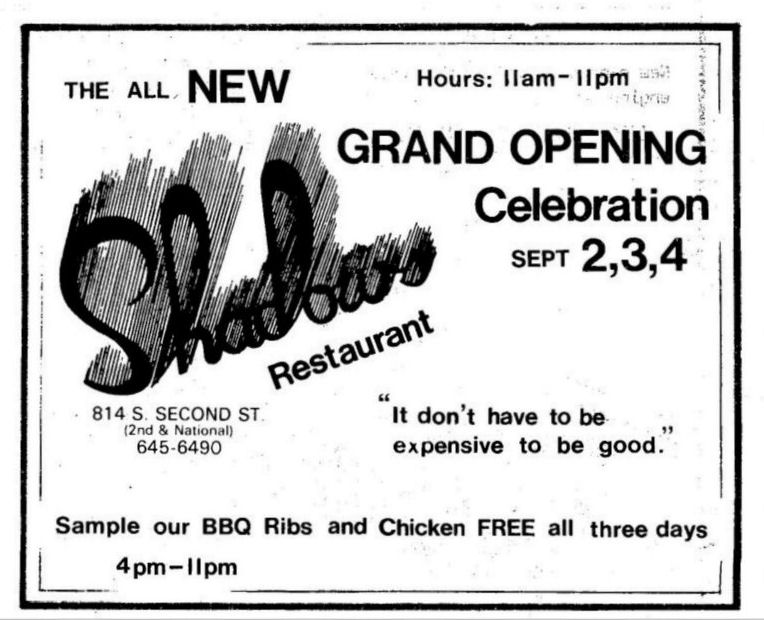 Ad: Grand Opening, the All NEW Shadows Restaurant (The 'Diplomats' name is never used again)
