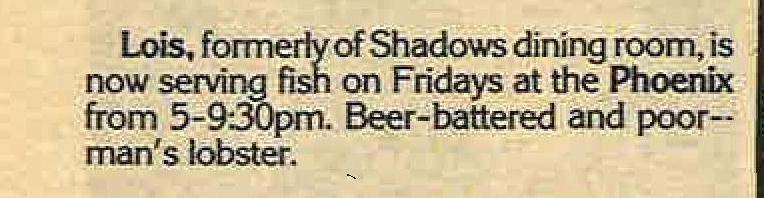 Article: Chef Lois, formerly of Diplomat restaurant at Shadows, now doing fish fry at The Phoenix bar