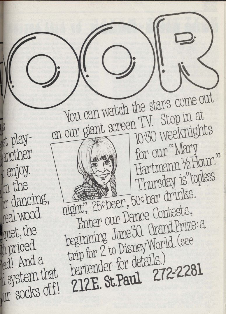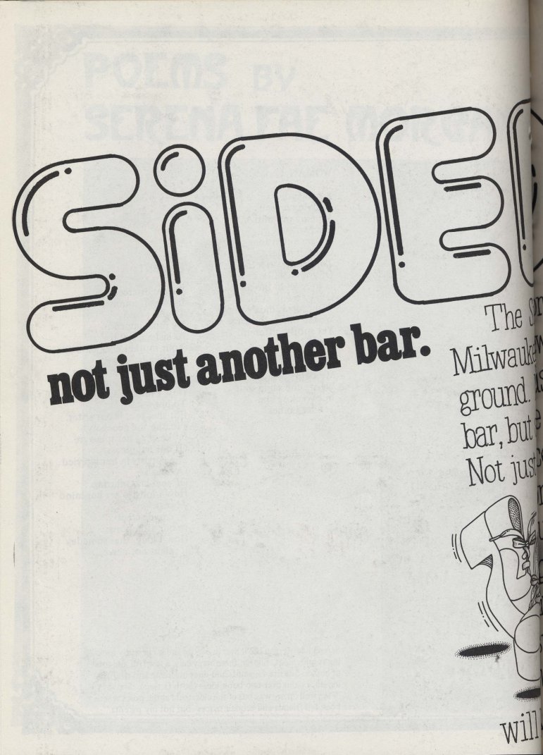 The SideDoor was a reincarnation of one of Milwaukee's most legendary bars, the River Queen. An advertisement for The Sidedoor appeared in the July 1976 issue of the GPU News. It advertised itself as "not just another bar" and touted a wood parquet dance floor, giant screen TV, and other features. The August 1976 issue of the local "GLIB Guide" describes the business as follows: "Another familiar bar, the River Queen closed, remodeled and reopened as the Side Door. The new bar is an expanded version of the old bar, with plus carpeting and a giant-size TV screen. The Side Door also features a disco." The Guide in the same issue sums it up: "Extensively redone bar has huge TV (screen, that is), front dance floor and rear disco. New." More information about this business is welcomed from anyone who can contribute it. |