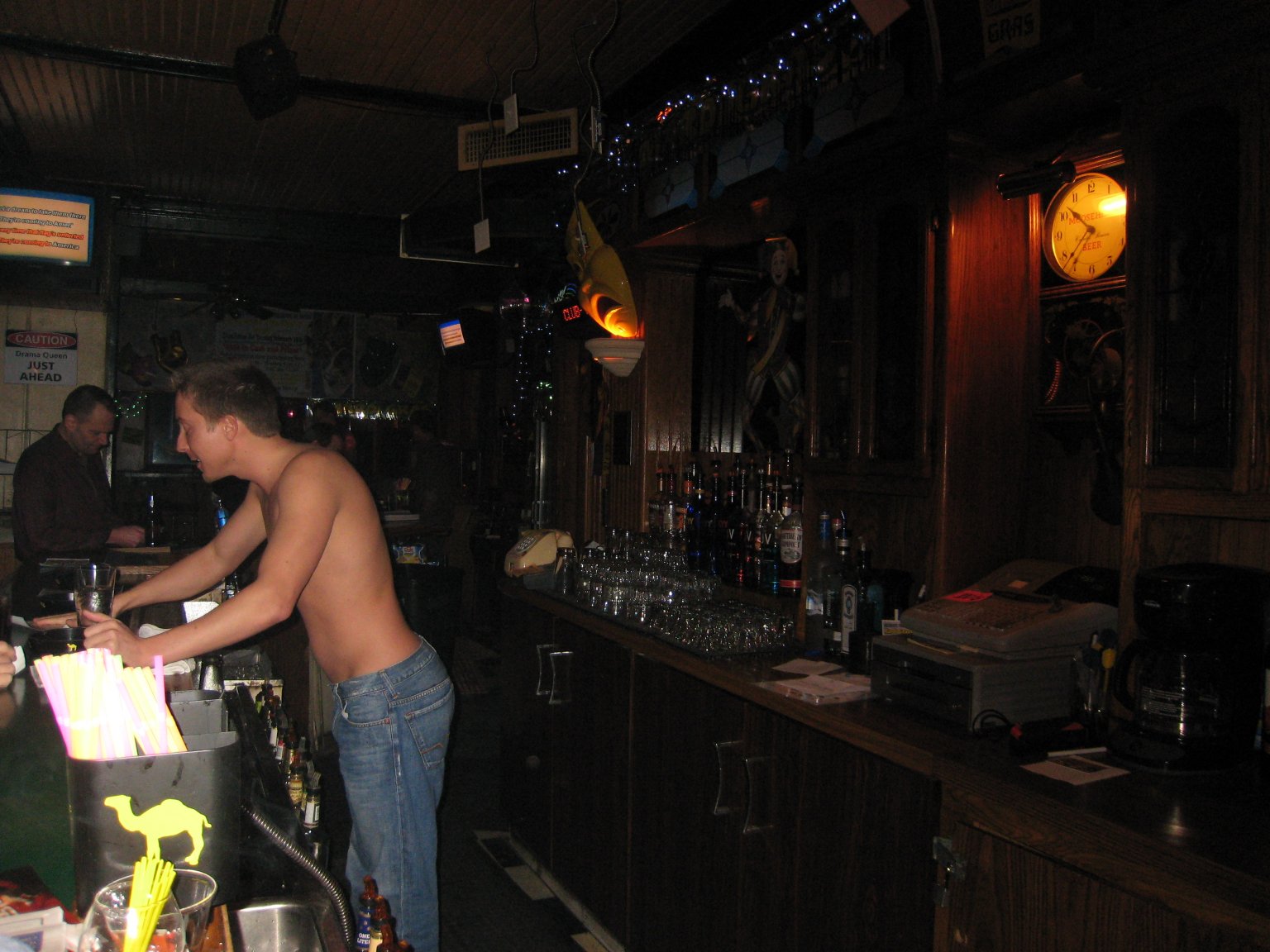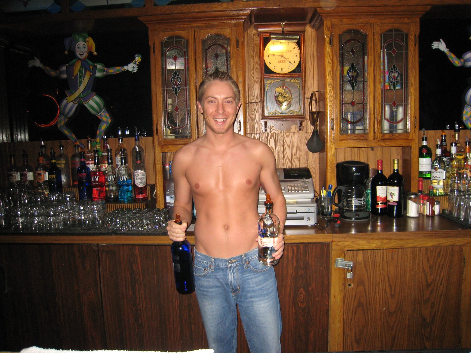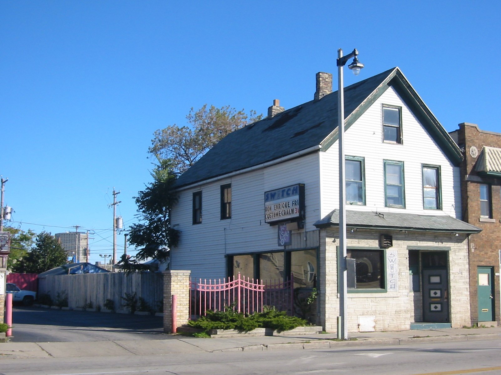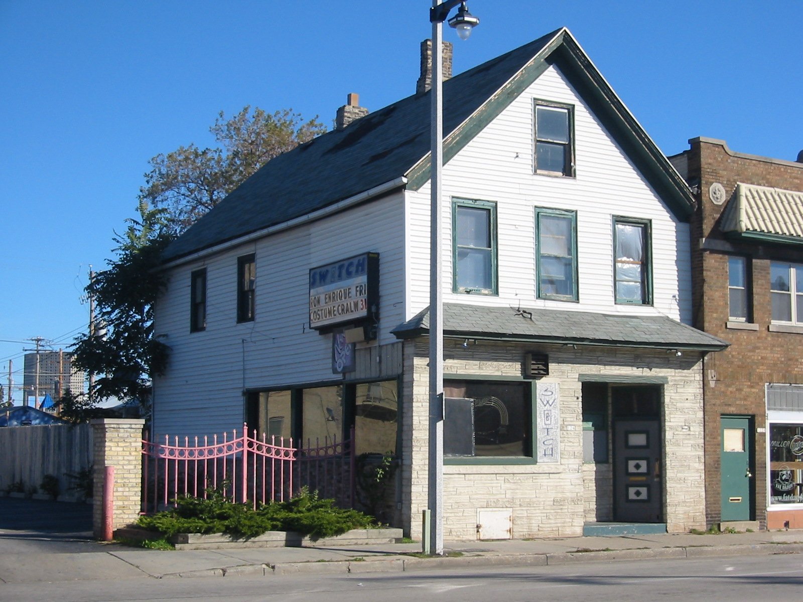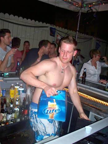 Switch was opened by Craig in 1999 (he owned it prior to that as a straight bar). It had big windows facing west. Many of us remember when gay bars always closed off the windows to the outside. (M&M started the trend of big open windows.) It was fun sitting by the windows watching the night life as you could see who was coming and going from LaCage, Orbit and Fluid. There was a good sized patio just outside the back door with a nice sized bar out there. A canvas tent kept part of it semi-private from the outside, and kept the sun from roasting people. There were about 6 picnic tables for people to sit and enjoy the sunshine. At night it was dimly lit and quite cozy. Many weekends Switch hosted “Foam Parties”. That meant that cloths were optional as long as you were in the foam. There were plenty of stories as to what happened below the foam level. The bar had a small dance floor in the back that also housed the dart games and the only photo booth I have ever seen in a Milwaukee gay bar. Plenty of “interesting” photos came out of that booth. Switch was somewhat of a sports bar after In Between closed. Much of In Between’s clientele chose Switch as their new sports bar including Curt Peck who owned In Between. Curt, in his goofy Packer hats, pretty much ran all the Packer Parties at Switch. For Halloween night Switch participate in the Halloween Night Bar Crawl. Costume contests were started at Triangle, then migrated to Switch, to Fluid, and finally ending at LaCage with grand prizes for best costume. It was nice to have all four bars working together like that. Switch was a favorite for those guys into seeing some skin. In its later years, it had regular "stripper" nights, with 2 or 3 strippers on hand taking turns dancing for the crowd. It was also expected from the typically "hot" bartenders that they go shirtless much of their shift, and thus attracted no shortage of regulars there for the eye candy. View excerpts of the Switch website as of November 2005. Switch closed in July 2008 after the owner of Steny's (the straight bar across the street) made Curt too good an offer for him to pass up. (A few "reunion" parties were held at Jack's Bar in 2009.) Recollections: The following are recollections of others who have been kind enough to submit their personal memories to the webmaster. You are welcome to do the same! (Recollections collected and organized by Jamie Taylor.) ---> "I used to love going to Switch for karaoke nights. It was such a small intimate bar that while you were singing, you could have the whole bar