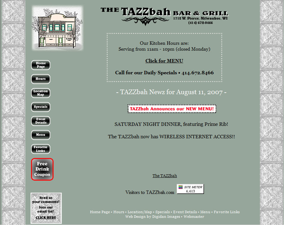 The Tazzbah bar opened in December 2004. The primary owner was Steve, who had previously been a popular bartender at the Boot Camp Saloon.