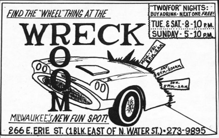 Advertisement, August 1972 showing front end of car which is actually mounted in the Wreck Room back room