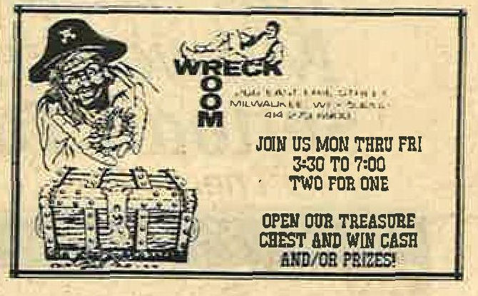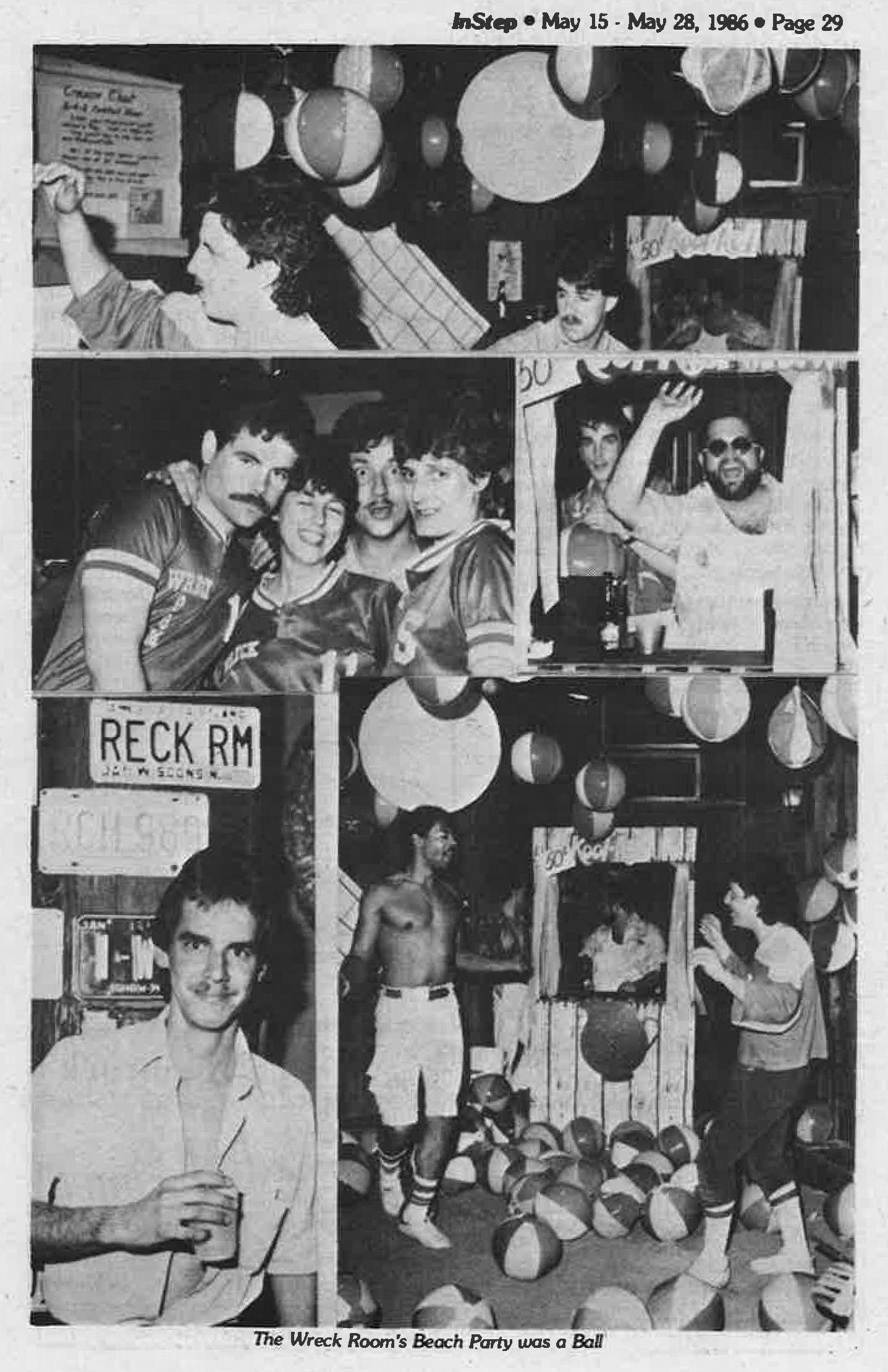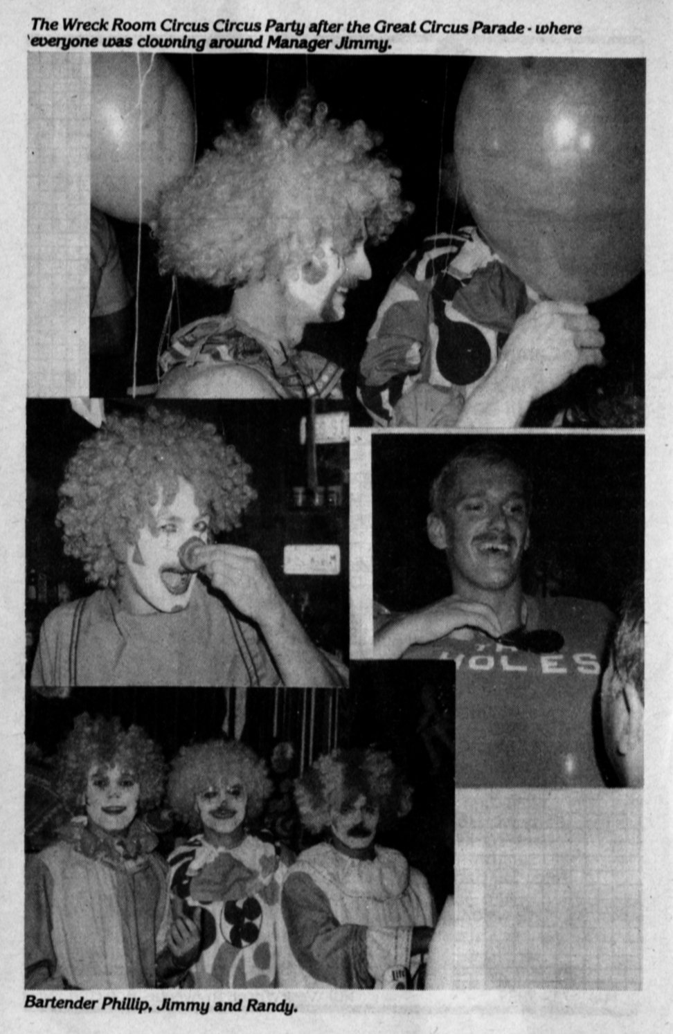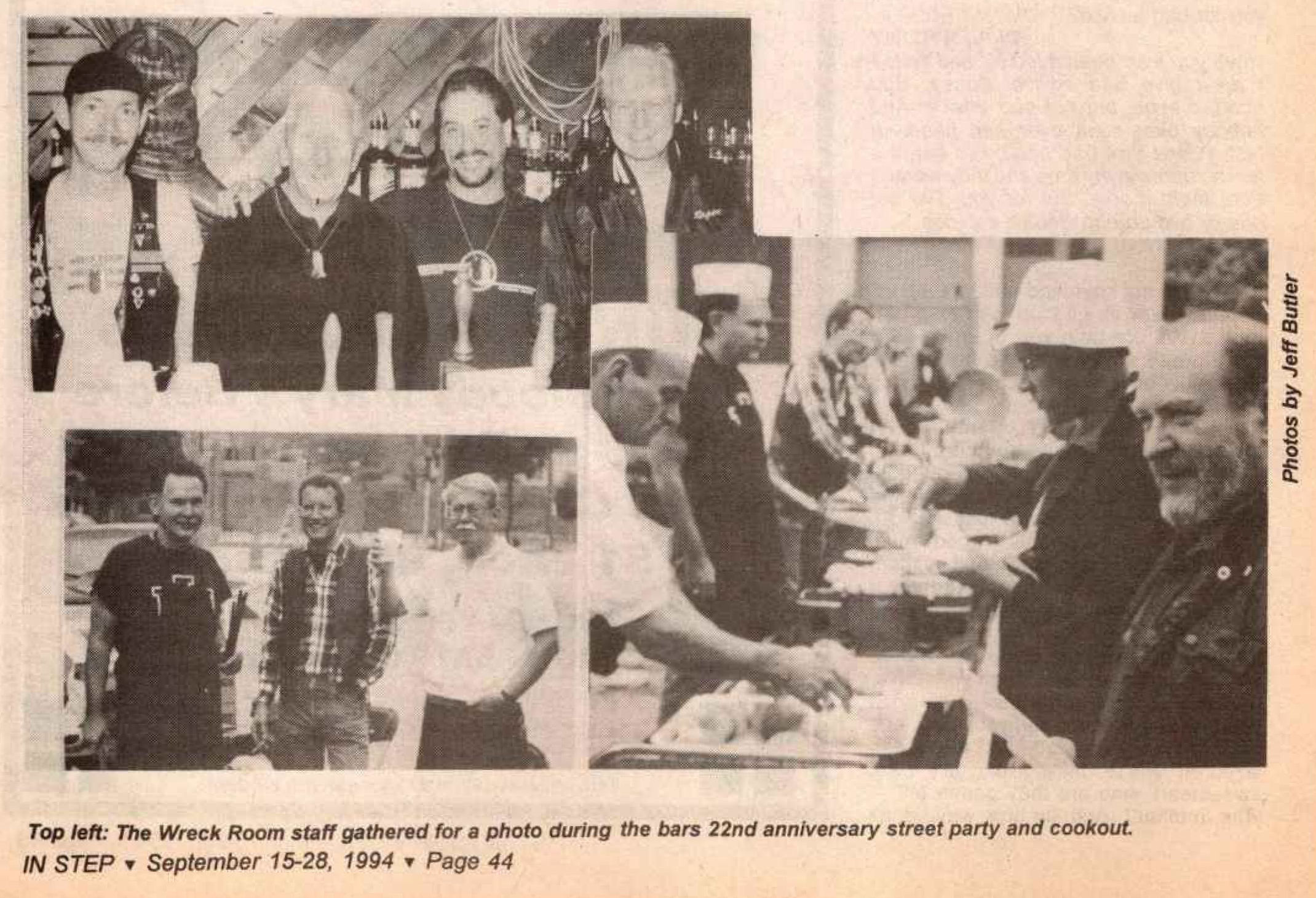 Photos: Tax Refund Party top: Fred filling out Wreck Room form 69-EZ; bottom: owner Wayne with bartender Gary