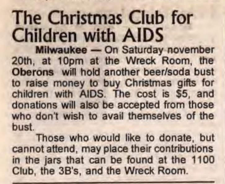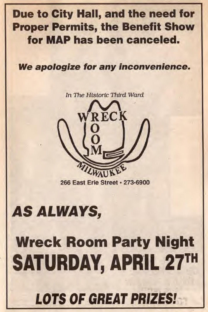 Ad: Benefit show for MAP (Milw AIDS Project) canceled