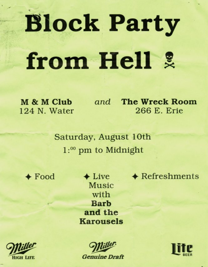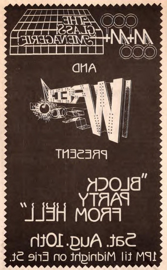 Ad: Block Party from Hell, with M&M Club (purposely printed mirror image)