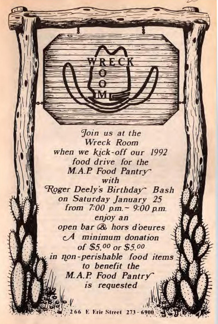 Ad: Food Drive for MAP Food Pantry, Roger Deely's Birthday