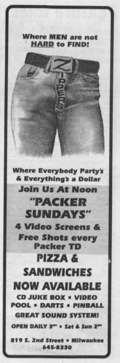 This location has been host to a long tradition of LGBT establishments. The first was apparently "Friendly's Bar" (1944-1947). It was operating as 'The Hustler' in the early 1970s, which may also have been somewhat gay friendly (additional research is needed). Its run as indisputable LGBT establishments really began when it became 'The Decision' in 1976. Next it was Hideaway (1976-c1980), after which its occupancy was uncertain for a few years. But its string of housing LGBT businesses resumed with the relocated Mint Bar II/ Angelo's (1986-1991), followed by BJ's Mint Bar (1991-1993), Zippers (1993-1998), and finally Fluid in 1998-- which is still open in 2021. More information about this business is welcomed from anyone who can contribute it. |