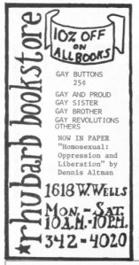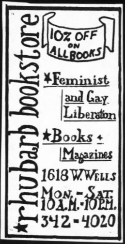 Rhubarb Bookstore advertised briefly in the 'GPU News' in the early 1970's.