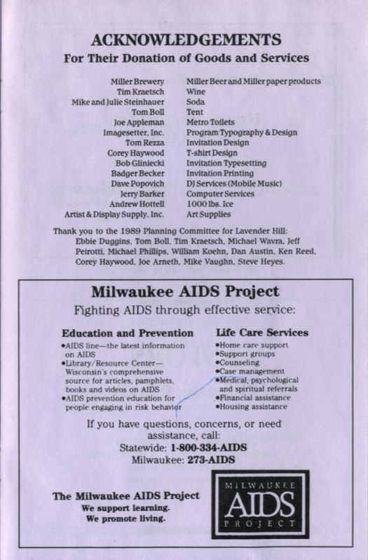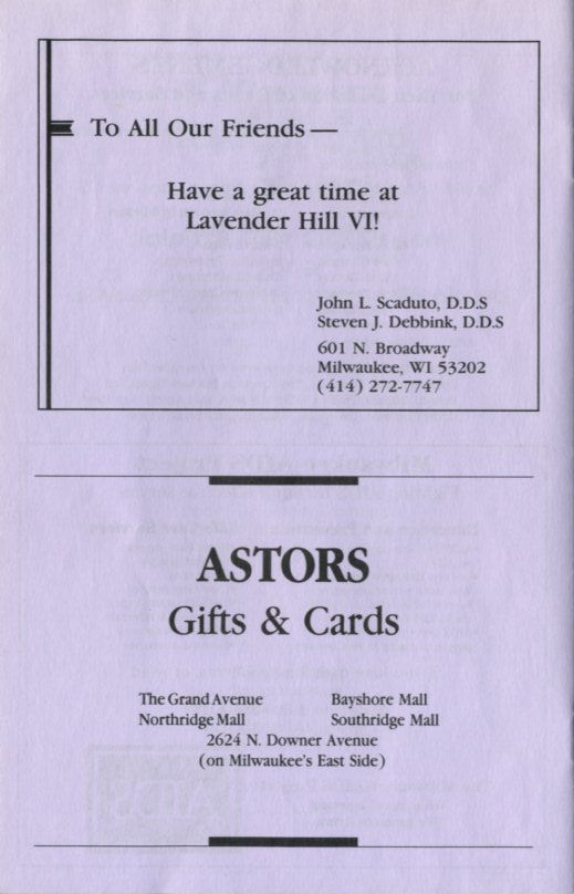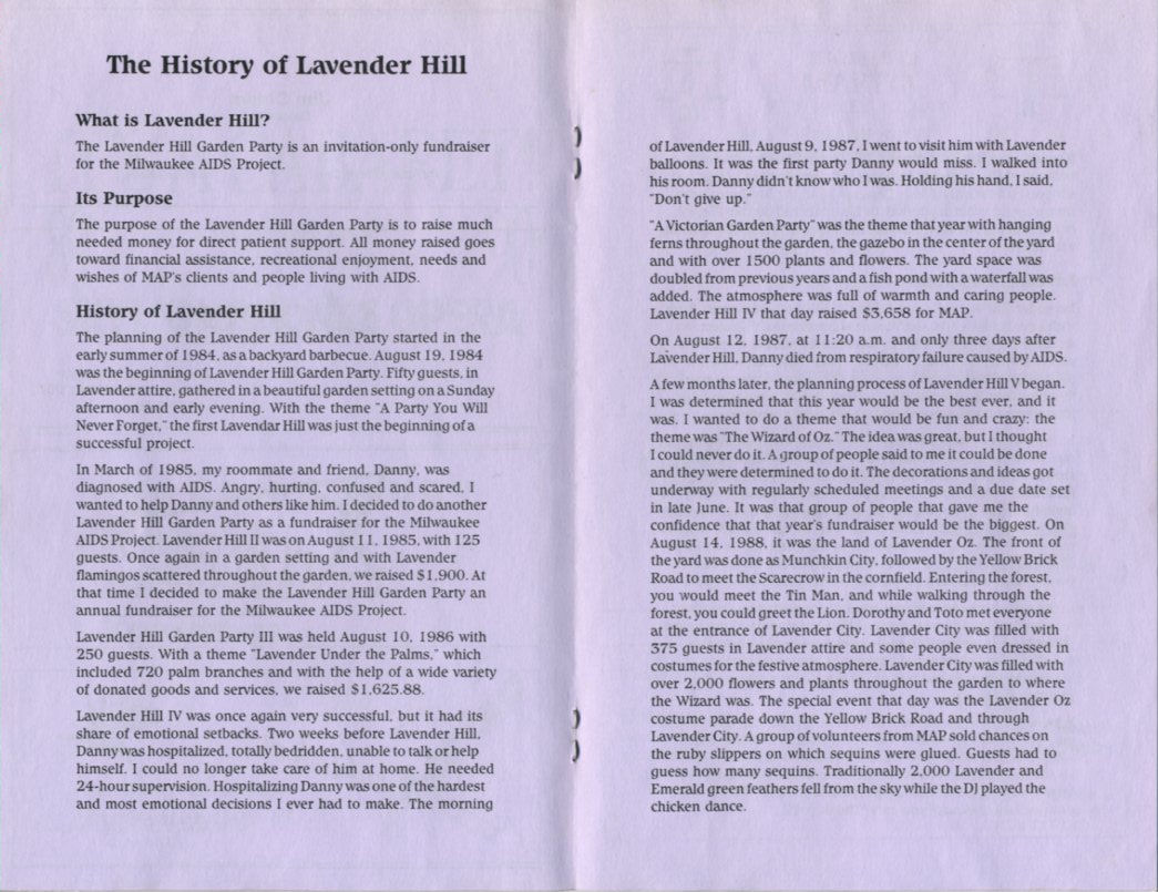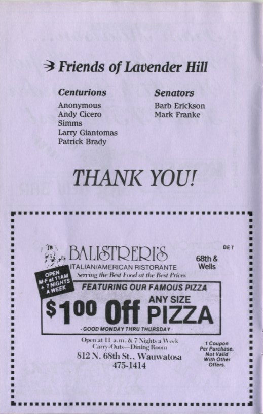 Credits: Archival materials for Lavender Hill from the Jerry Johnson collection in the UWM Archives. Page design and format by Don Schwamb. Last updated: April-2009.