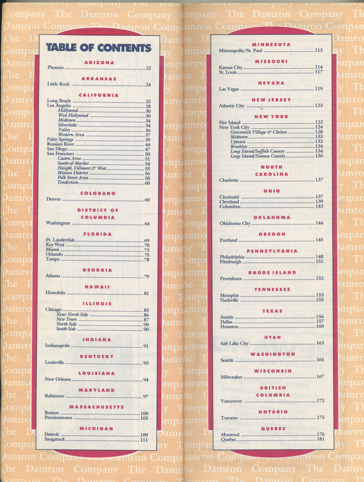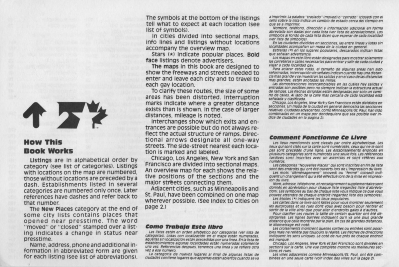 (First edition of a Gay travel atlas featuring maps and guides to major cities in the US and Canada)