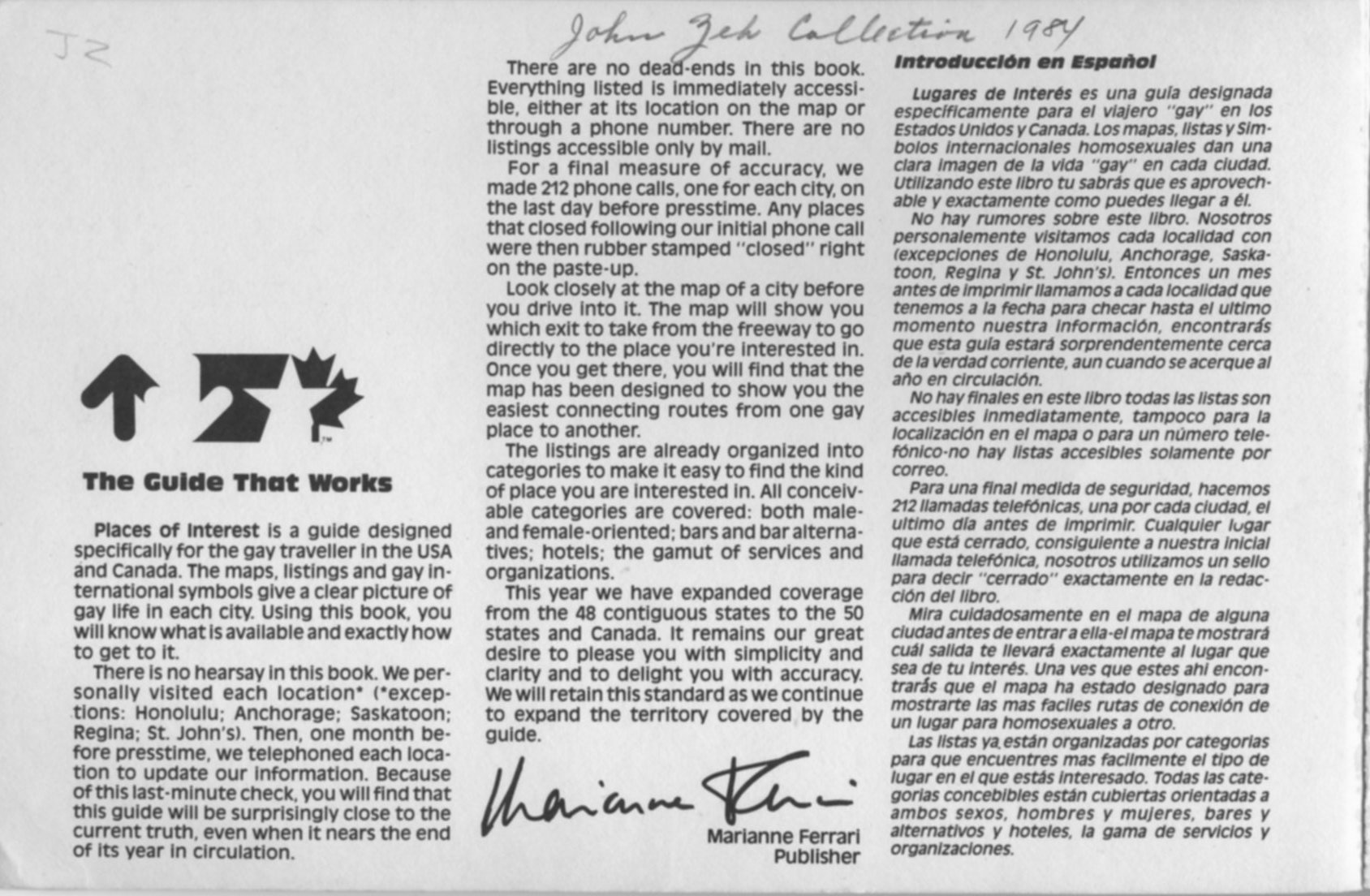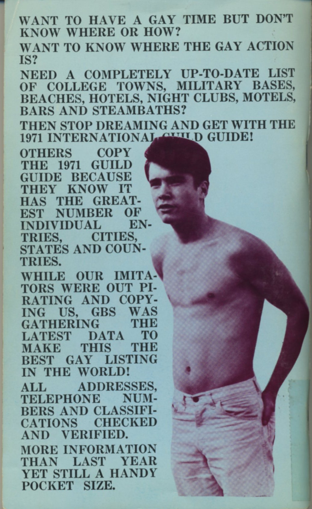 Guide in GLIB, Issue 1, August 1976 (a local LGBT publication)