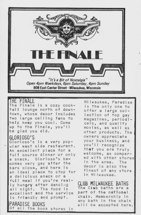 Finale + Glorioso's + Paradise Books + Club Milwaukee Baths