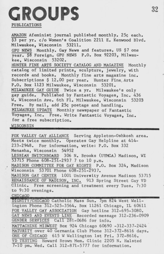 Directory of Groups/ Organizations: Publications + outside of Milwaukee
