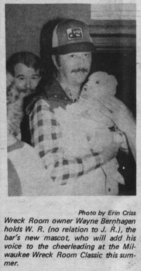 Wayne Bernhagen of Wreck Room and the new bar mascot
