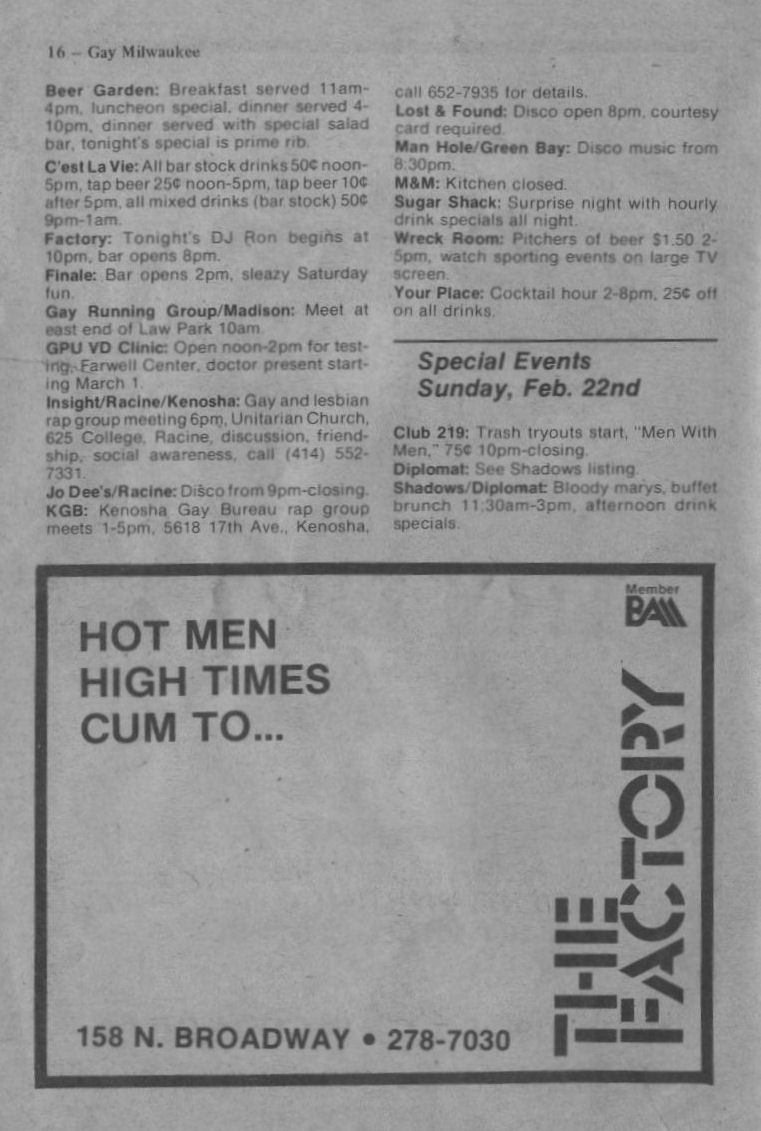 Ad: Sundays (Sunday-only bar), 500 N. Water St.