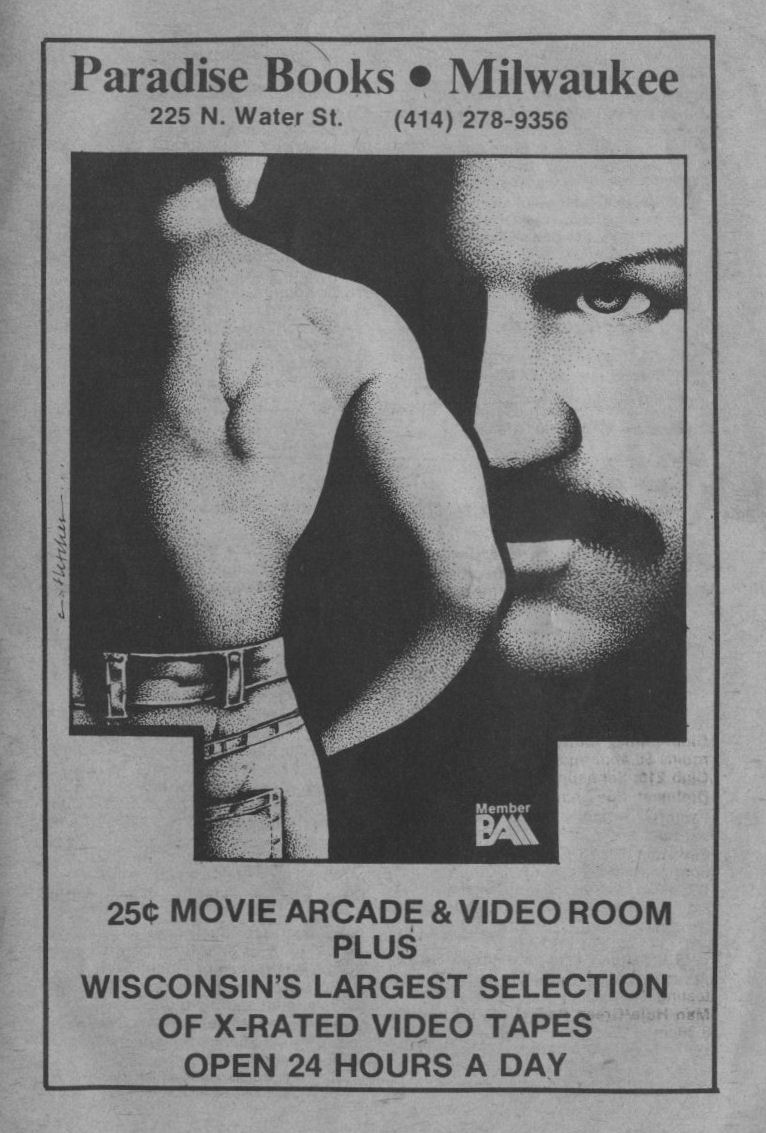 Ad: Paradise books: 25 cent video arcade, largest selection of X-rated video tapes