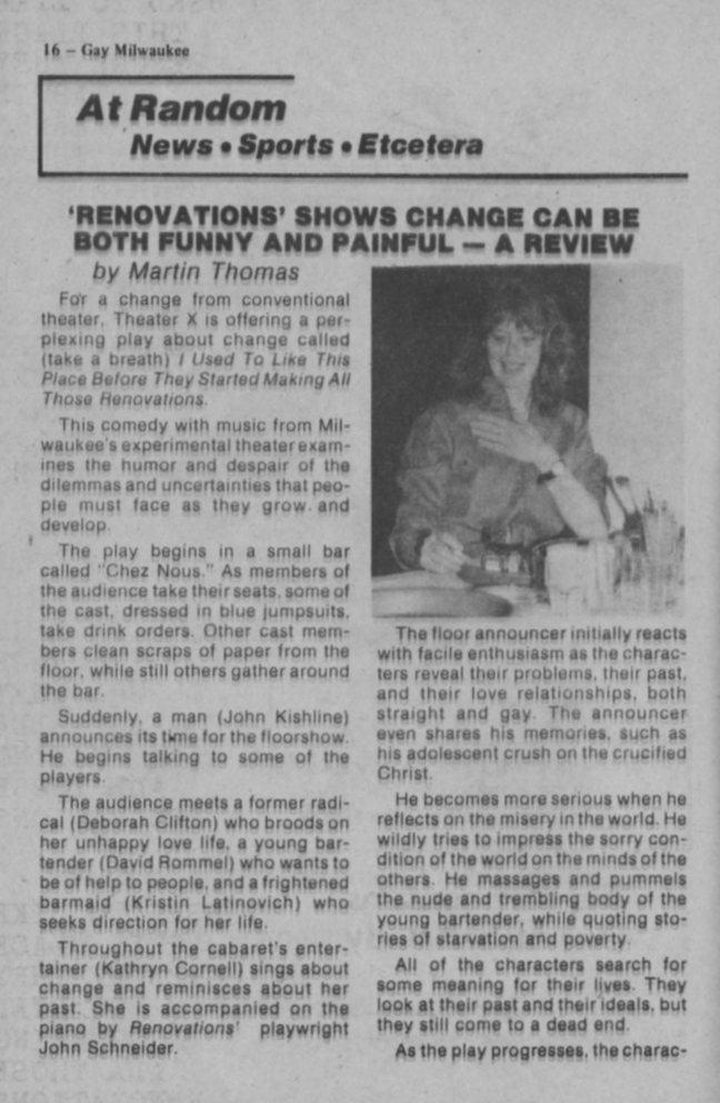 At Random: review of the play "Renovations" at Theatre X