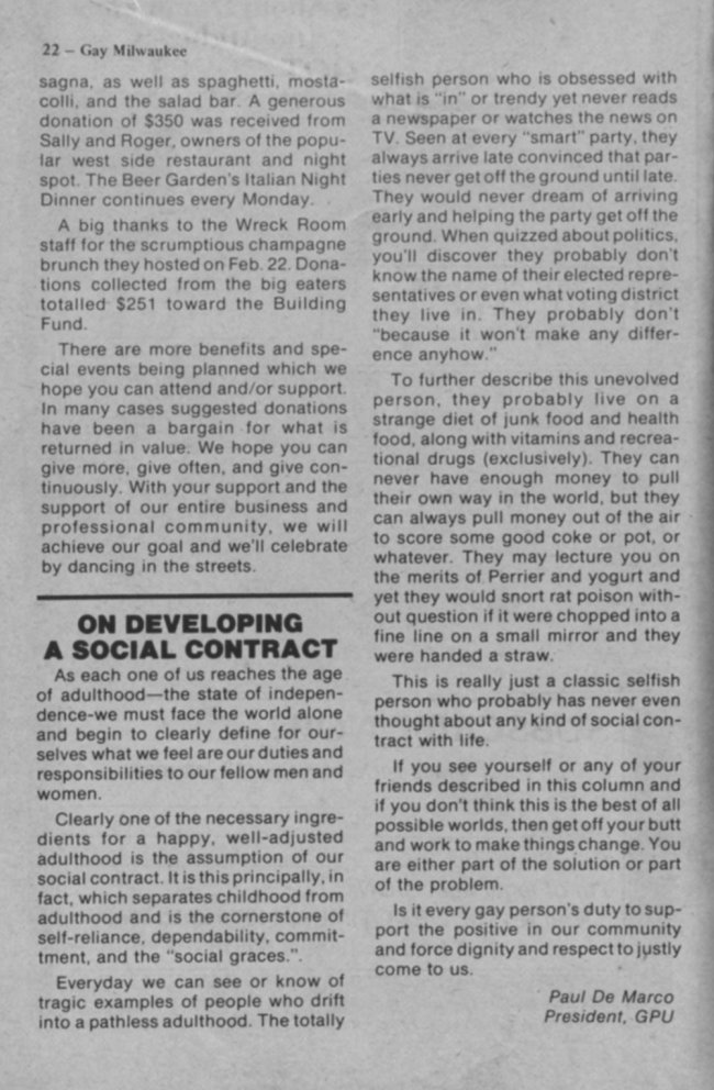 article "On developing a social contract", by Paul DeMarco, Pres. of GPU
