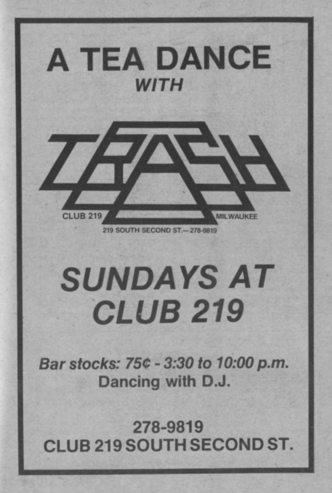 Advertisement: Club 219 TRASH tea dance