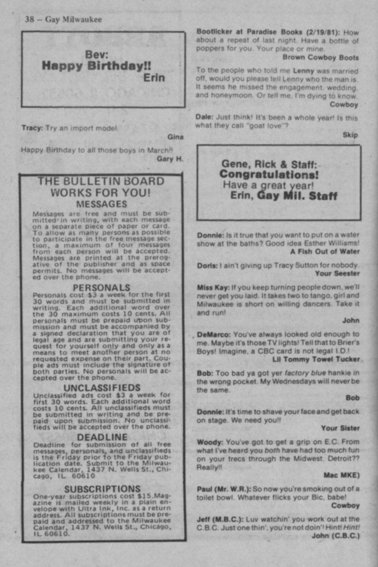 Bulletin Board and Personals