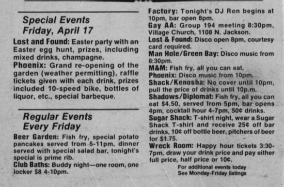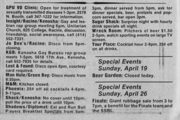 Ad: Club Milwaukee Baths + Calendar
