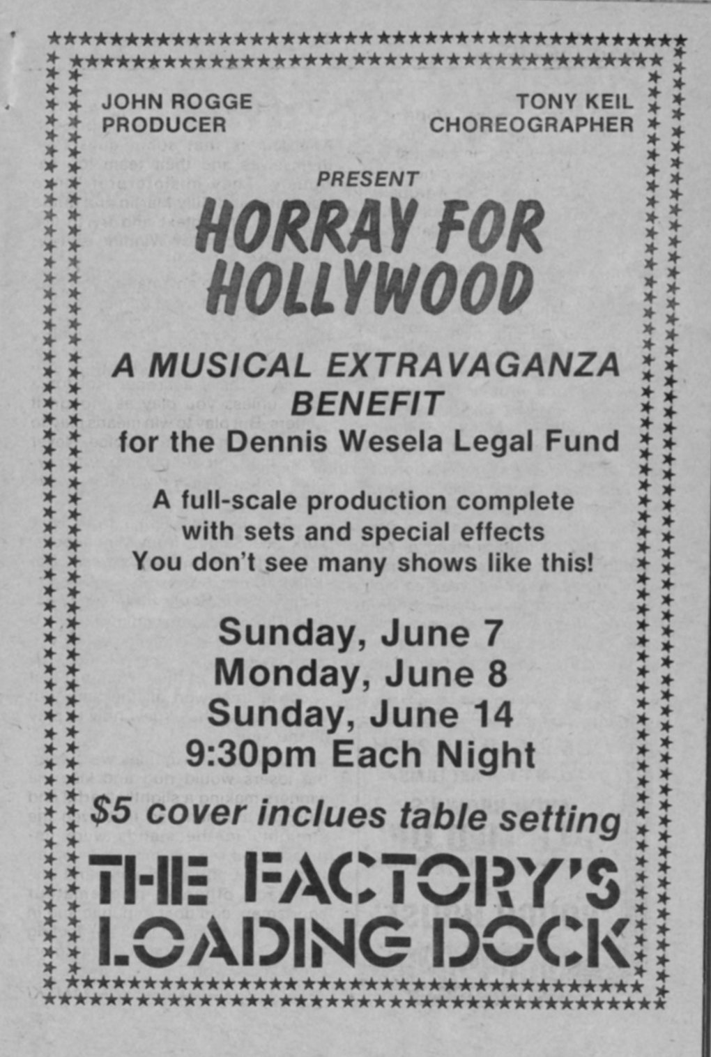 Factory Loading Dock lounge to stage "Horray for Hollywood"