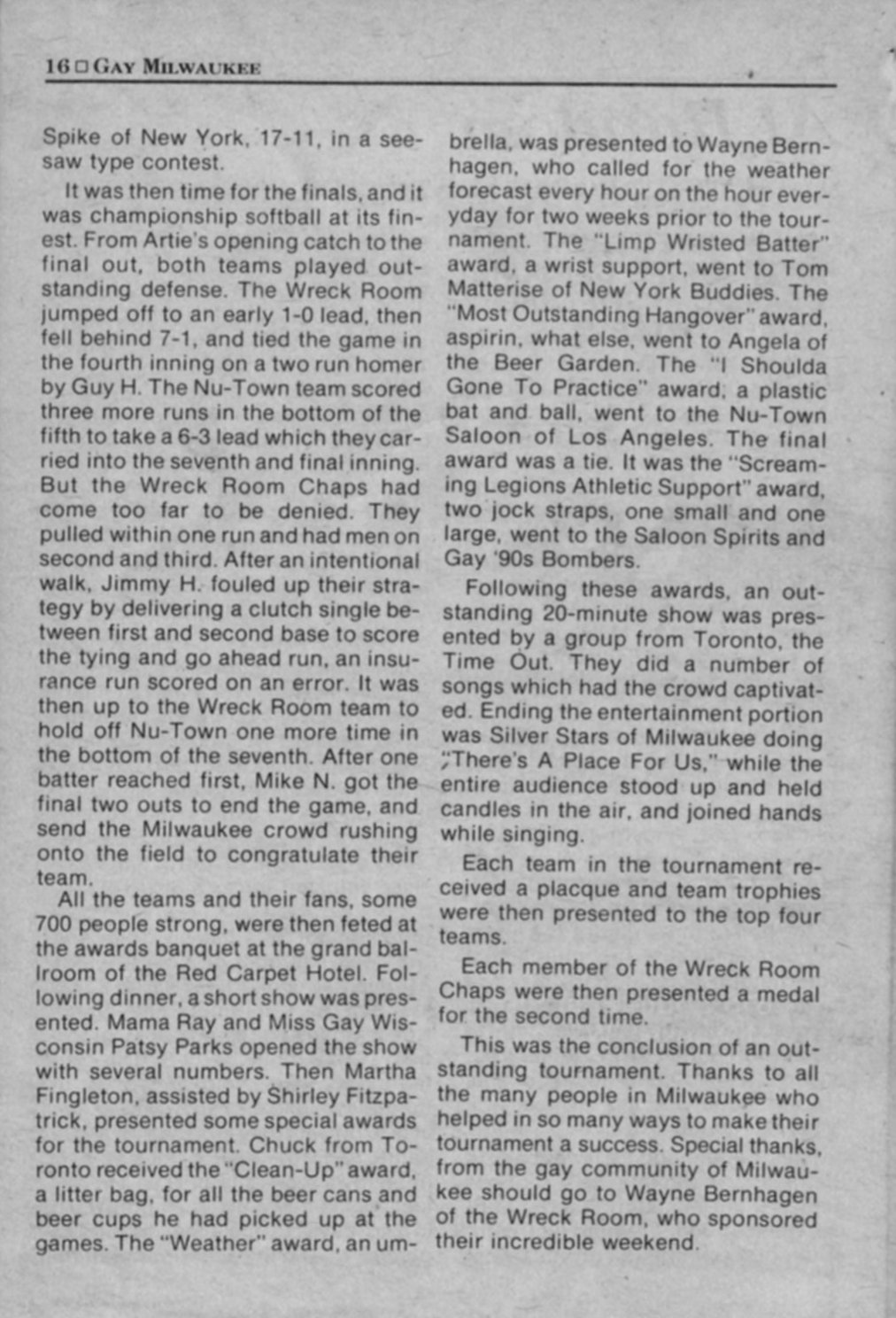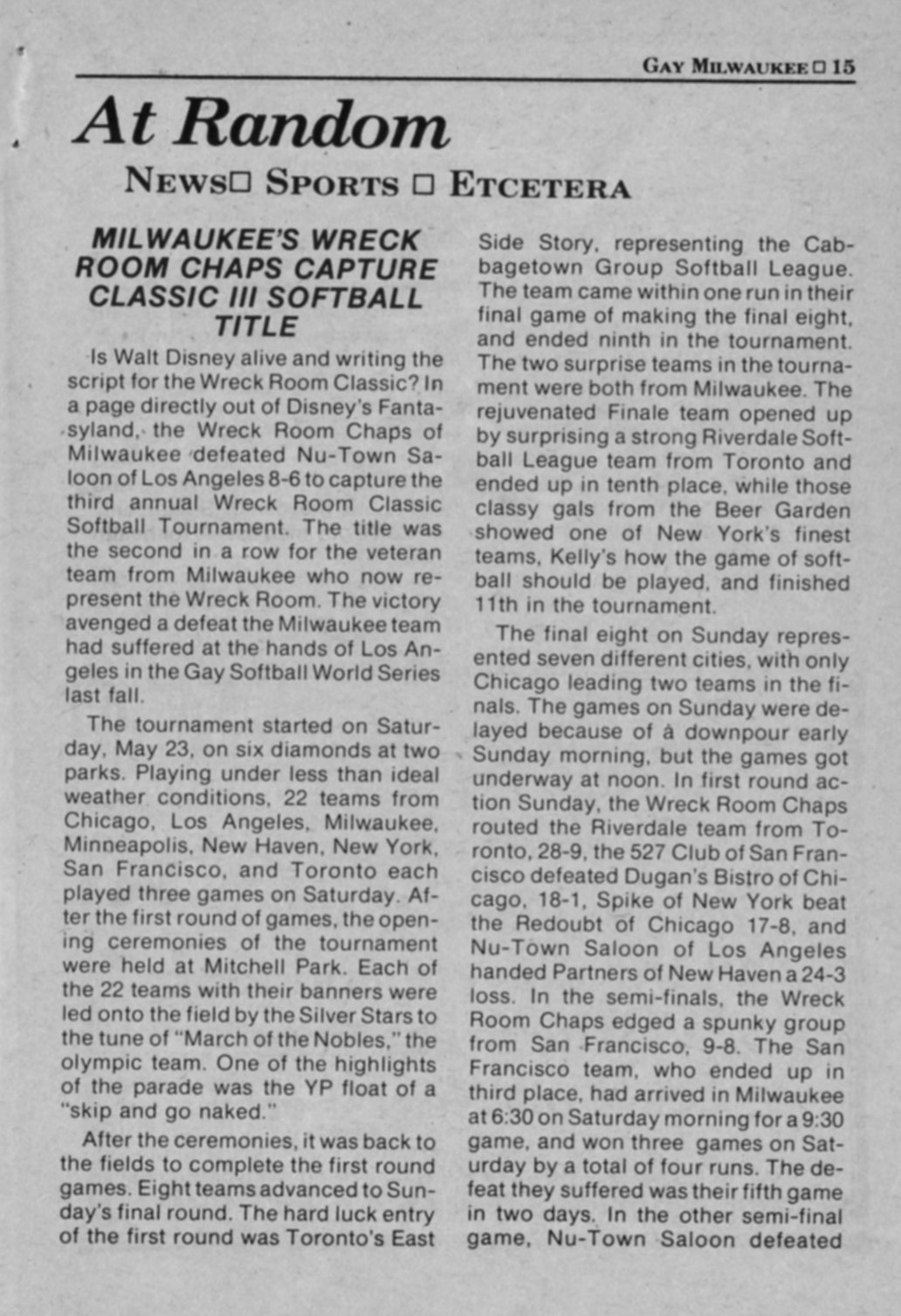 Wreck Room Classic III softball tournament: Results and Scores