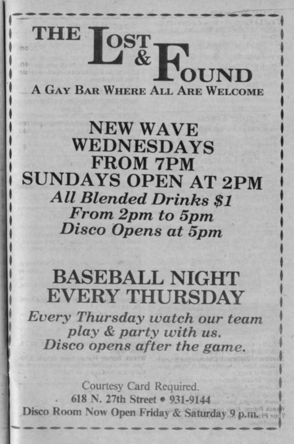 Advertisement for Lost & Found
