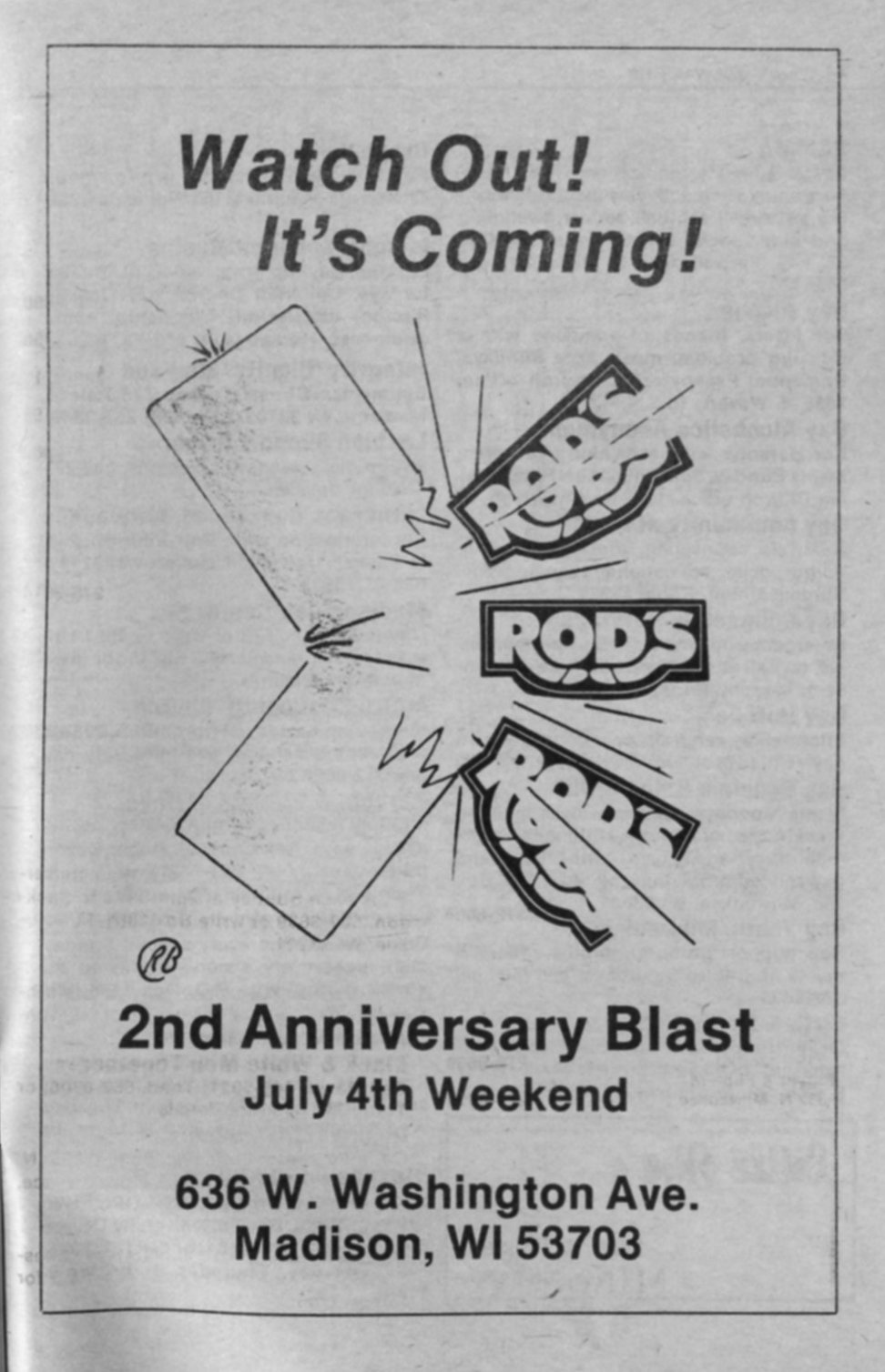 Advertisement for Rod's 2nd Anniversary (Madison)