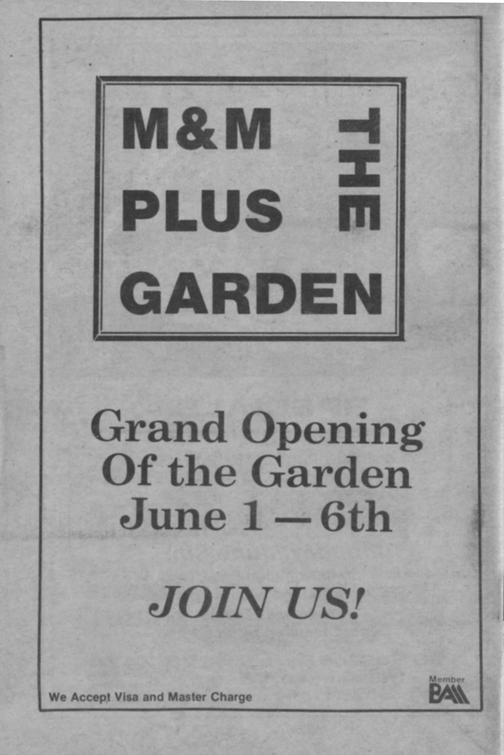 Advertisement for Grand Opening of M&M's Garden